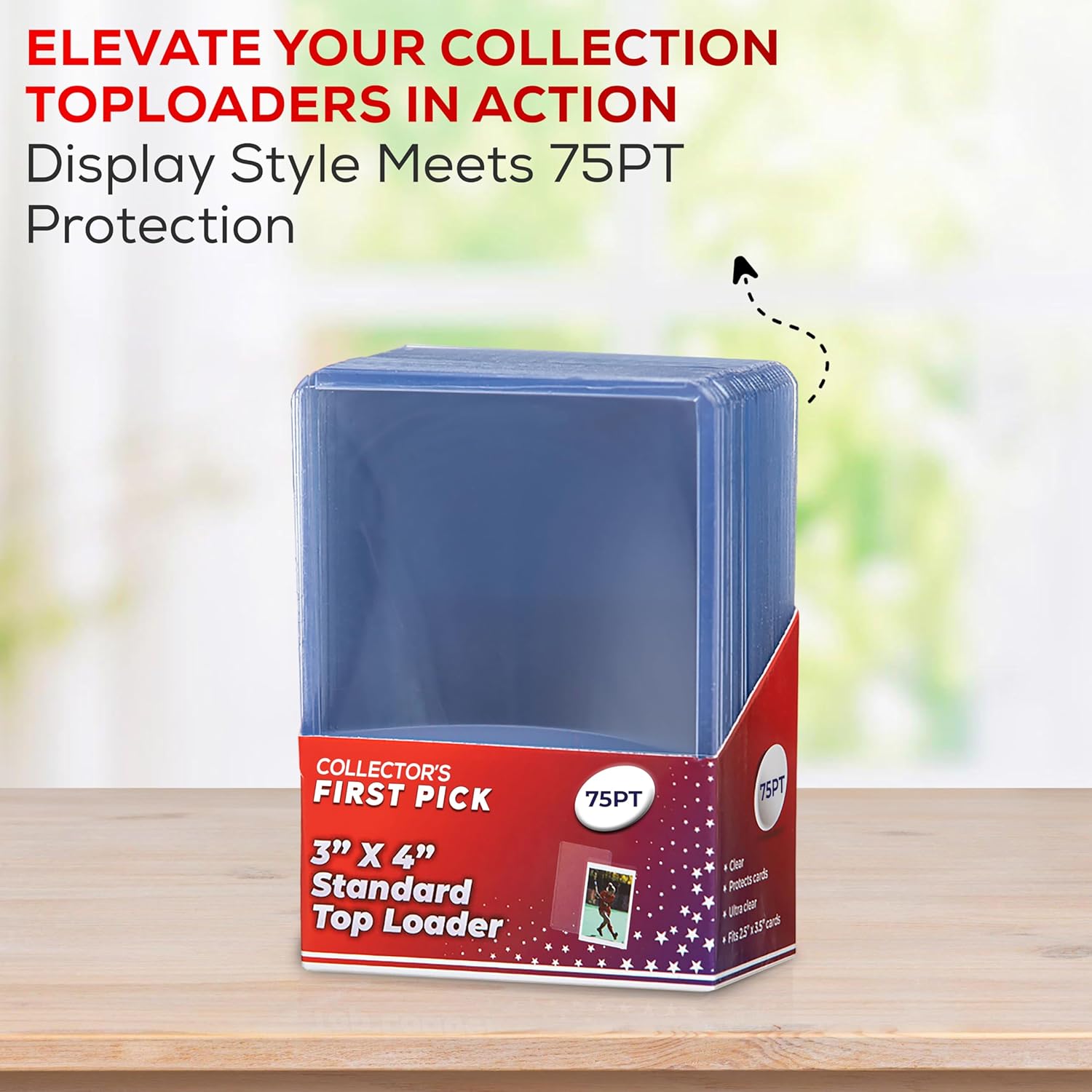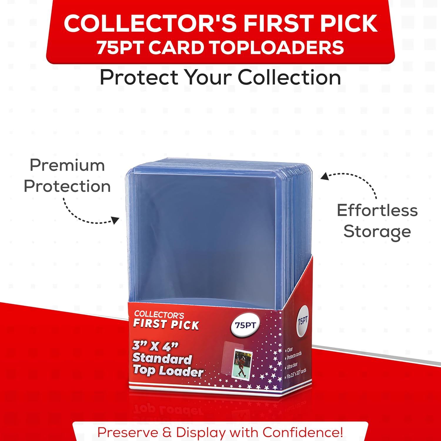 Protect and store your valuable sports and trading cards with our 75pt Top Loader Pack Card Sleeves. Our thick storage card protectors are perfect for keeping your football, basketball, baseball, hockey, and other memorabilia cards safe from damage. Each pack contains pieces, so with this 2-pack offer, youll receive a total of pieces to ensure you have plenty on hand for all of your storage needs. These card sleeves are ideal for various types of cards including Sports Cards, Baseball Cards, Basketball Cards, Football Cards, MTG, Kpop, tarot, and more. The durable construction of these sleeves provides reliable protection against bending, tearing, or water damage. In addition to being perfect for individual card protection, they can also be used in conjunction with deck boxes or display frames for a complete storage solution. Our top loader packs are made from sturdy cardboard with a plastic cover that allows for easy viewing of the enclosed card. Plus, the top loading design makes it simple to insert and remove cards without risking damage or wear. Whether youre looking to safeguard your collection or display them proudly, these bulk card sleeves are the perfect choice for any collector. Dont let your valuable cards go unprotected - invest in our quality card protector sleeves today!