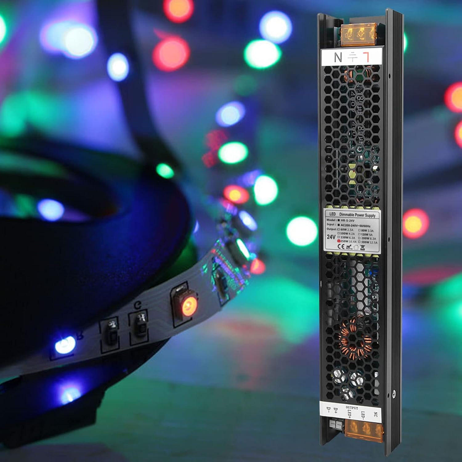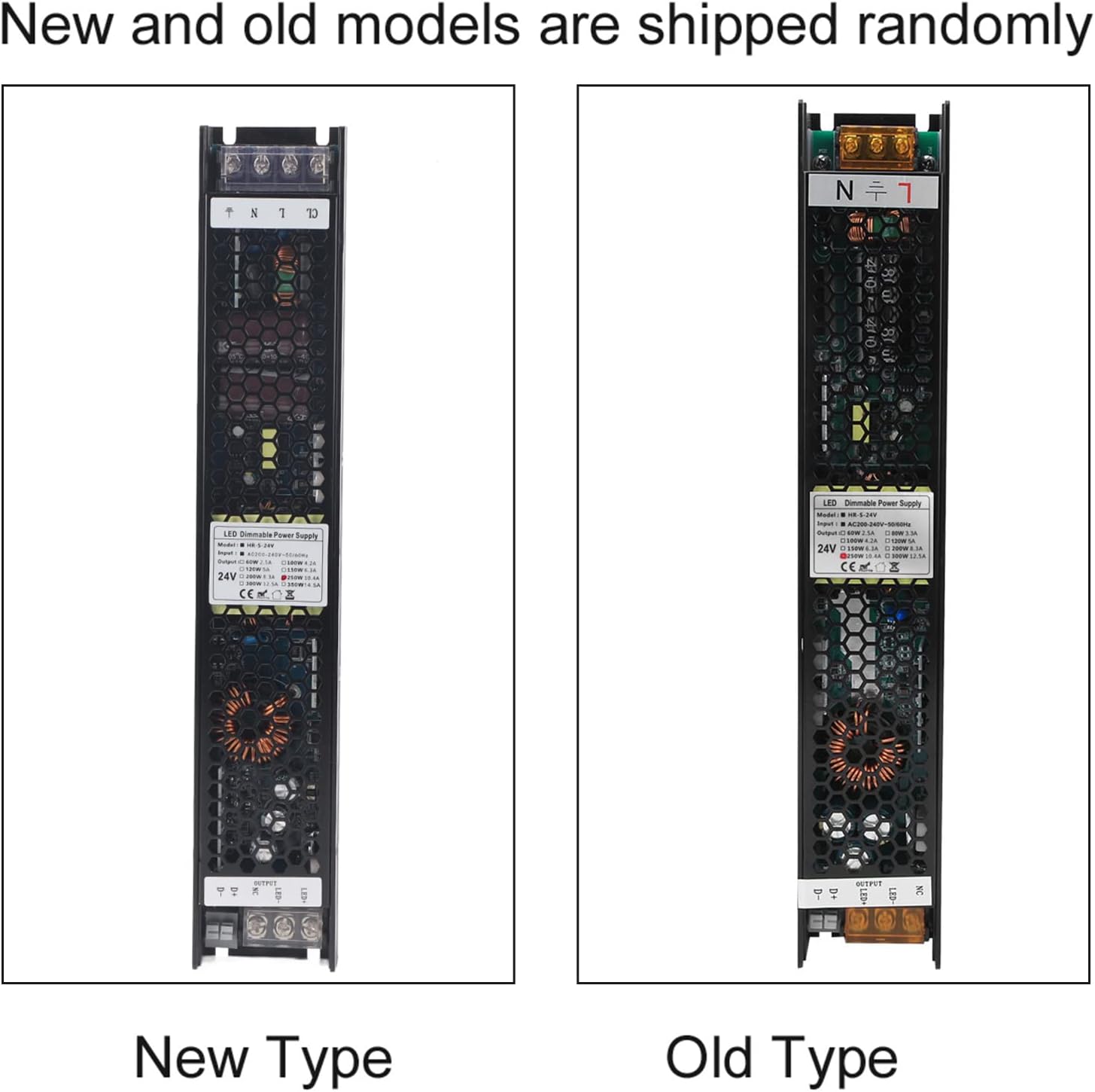 Item Type: Dimming Power SupplyInput Voltage: AC200-240V 50/60HzOutput: 12V 20.8A/24V 10.4A(optional)Output Power: 250WWorking Efficiency: 95%Package List:1 x Dimming Power SupplyNote:If the customer has after‑sales problems, please take an operation video to feedback to customer servicePlease note that the new type and old type of this product will be sent randomly, and make sure you will not mind before ordering.