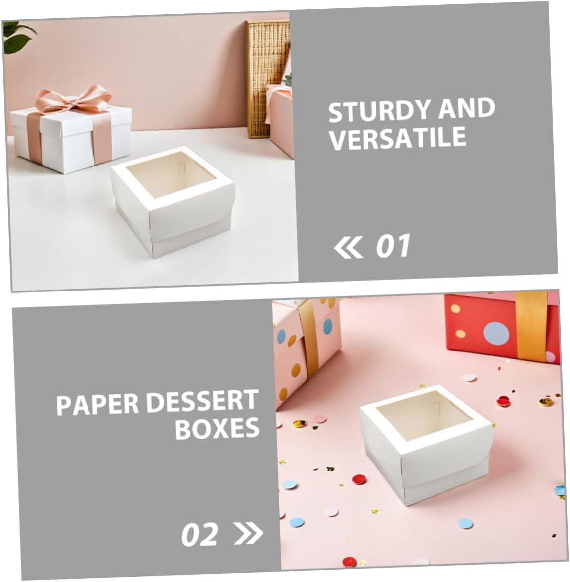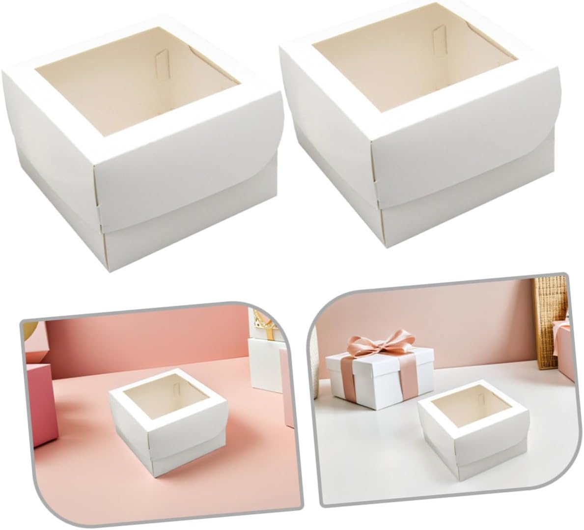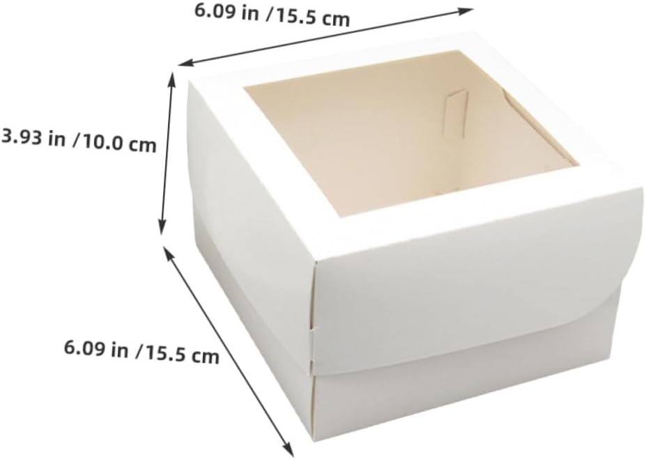 Package List 25 x Cake Boxes Features -Product Info: Baking packaging boxes -Size:15.50X15.50X10.00cm/6.09X6.09X3.93in -Compact design for small pastry boxes: sized for cakes, these small pastry boxes with window offer a sleek and portable solution for packaging desserts, ensuring freshness and presentation -Material:Paperboard,PVC -Versatile food packaging boxes: these pastry containers are suitable for various desserts, including chocolate, macarons, and pies, making them a versatile choice for bakery takeout containers food packaging boxes -Color:White - paper cake carrying box: made from paper, these bakery dessert boxes are sturdy and reliable, ensuring safe transportation of cakes, cupcakes, and other baked goods single cupcake boxes -Transparent window for bakery display box: the clear window design allows customers to view your bakery treats, making these cake boxes with window ideal for showcasing desserts like mousse, cupcakes, and pastries cookie boxes for packaging -Paper dessert boxes: crafted from recyclable materials, these paper bakery boxes are an option for packaging cakes and treats, reducing waste while maintaining qualityGoods Informationcookie boxes with window The transparent window highlights your treats, making them for bakery display boxes or takeout food containers.sweet cake boxes Ideal for present or transporting, these bakery dessert boxes your creations stay fresh and presentable.single cupcake boxes These paper cake boxes with window are designed for showcasing small pastries, desserts, or cupcakes