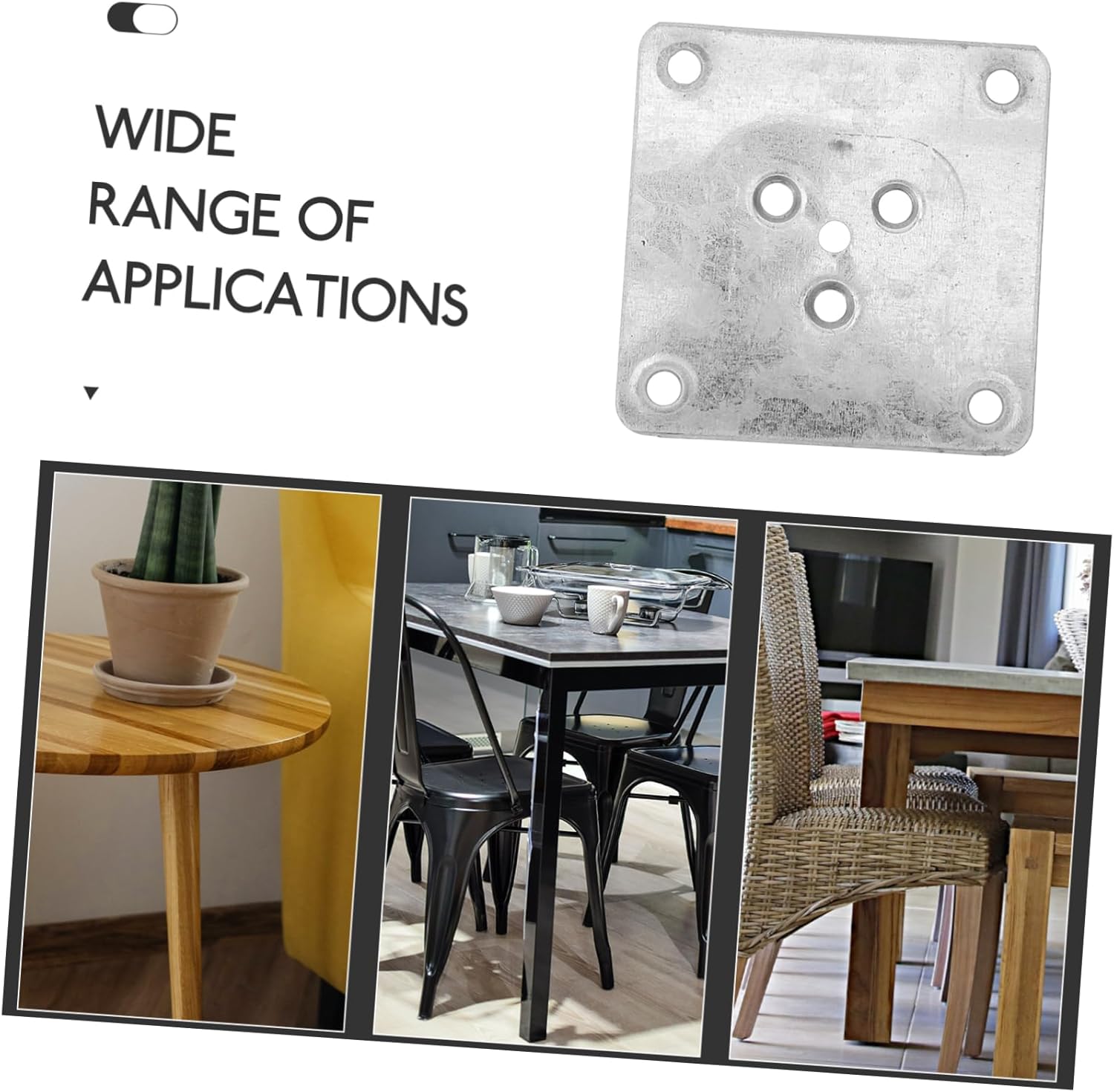 Package Include 25 x Table Leg Brackets Characteristics - Color: Silver legs set - Size: 7.00X7.00X1.50cm/2.75X2.75X0.59in legs mounting - Hole Diameter:6mm leg mounting plates -Material:Iron mounting screw - Made of thick and iron material which can be stability and longevity mounting plates for couch. - Easy to operate and to install with the simple structure, to provide you with a more relaxed way of modification table leg hardware. - Suitable for a variety of furniture types, making it convenient and furniture leg attachment plates. - The repair set can replace your old or broken table leg bracket with a new one furniture feet pads. - The stable hole design provides a more secure connection for furniture legs chair leg connectors.Goods InformationMounting plates for sofa Features the iron material, which has high durability, not easy to deform.sofa leg mounting plates This table leg bracket is solid and sturdy, which can withstand use.furniture leg mounting hardware Fine workmanship, ensures practicality.sofa legs mounting plates This table leg bracket will make the repair and fix easier and smoother
