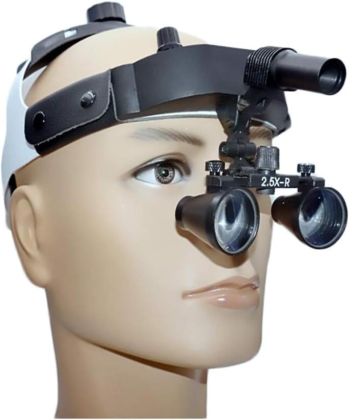 2.5X Dental Magnifiers, Surgical Binoculars, Optical Glass Lab Equipment, Leather Headband, Medical Magnifier with Led Light