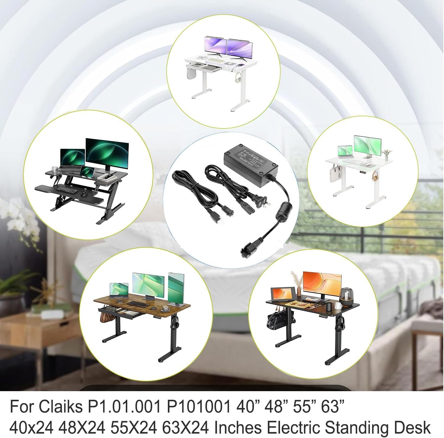 • COMPATIBILITY: Designed for Claiks Electric Standing Desk adapter,Compatible with Claiks P1.01.001 P101001 40" 48" 55" 63" 40x24 48X24 55X24 63X24 Inches Electric Standing Desk Adjustable Height Stand up Desk YH-K290018-C YHK290018C Class 2 Switching standing desk Power Cord