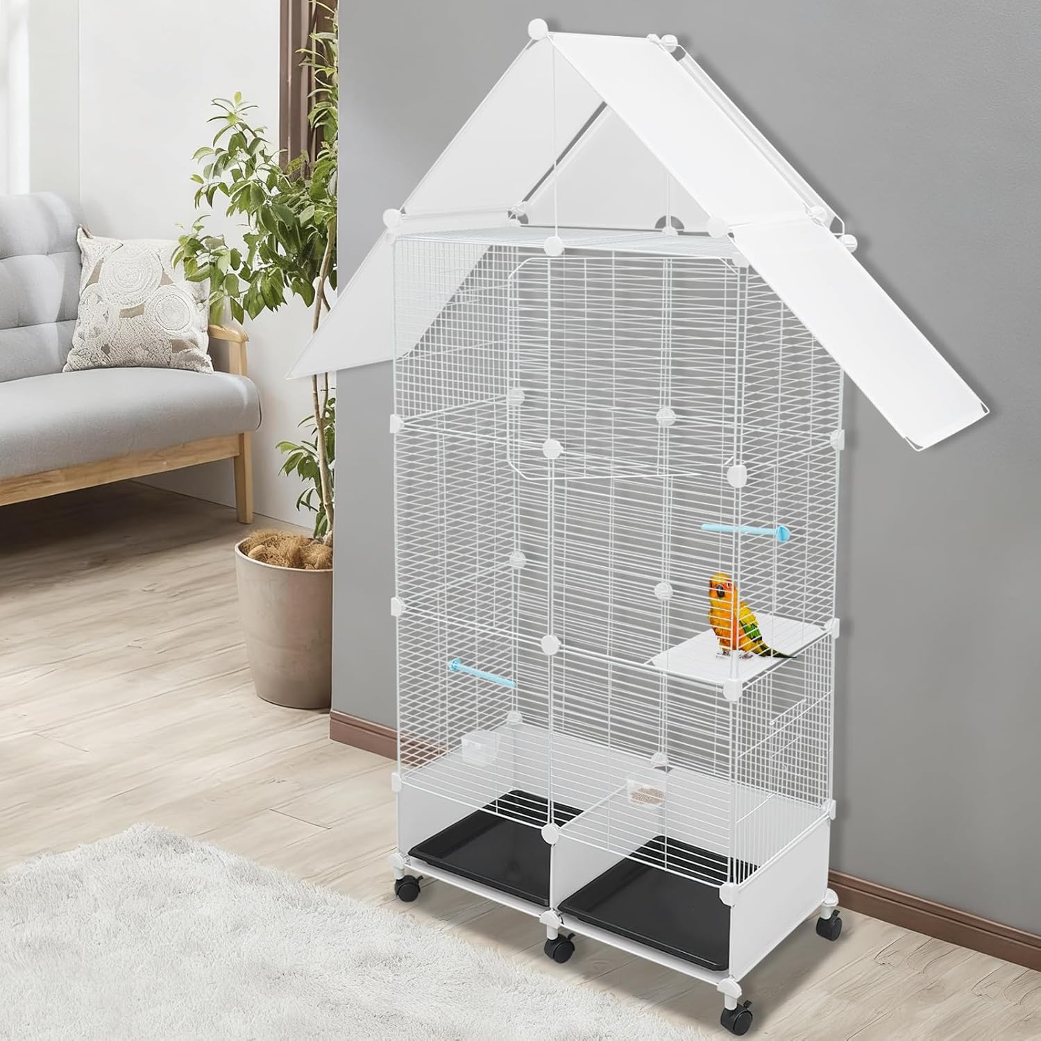 DetailsMain Door Buckle: It keeps the main door shut tight, so your birds can’t make a little escape!Horizontal Wire Structure: This lets birds climb like they love to—plus their little feet won’t get stuck or hurt while they play!ApplicationIt can accommodate small to medium-sized birds, such as budgerigars, green-cheeked conures, cockatiels, lovebirds (peach-faced lovebirds), Meyer's parrots, pionus parrots, and diamond doves.SpecificationsColor: Black/WhiteMaterial: IronProcess: SprayingAssembly Required: YesMount Type: FreestandingWheel Type: 6* Universal Wheels (All with Brakes)★3 TiersProduct Size: 74*37*163cm/29.1*14.5*64.2inPackage Size: 47*37*16cm/18.5*14.57*6.3inGross Weight: 9kg/19.84 lbsNet Weight: 8.55kg/18.85 lbs★2 TiersProduct Size: 74*37*126cm/29.1*14.5*49.61inPackage Size: 47*37*16cm/18.5*14.57*6.3inGross Weight: 7kg/15.43 lbsNet Weight: 6.65kg/14.66 lbsPackage Included1* Bird Cage2* Feeding Bowls2* Perchs2* Trays6* Universal Wheels1* English Assembly DiagramOther Accessories for Assembly