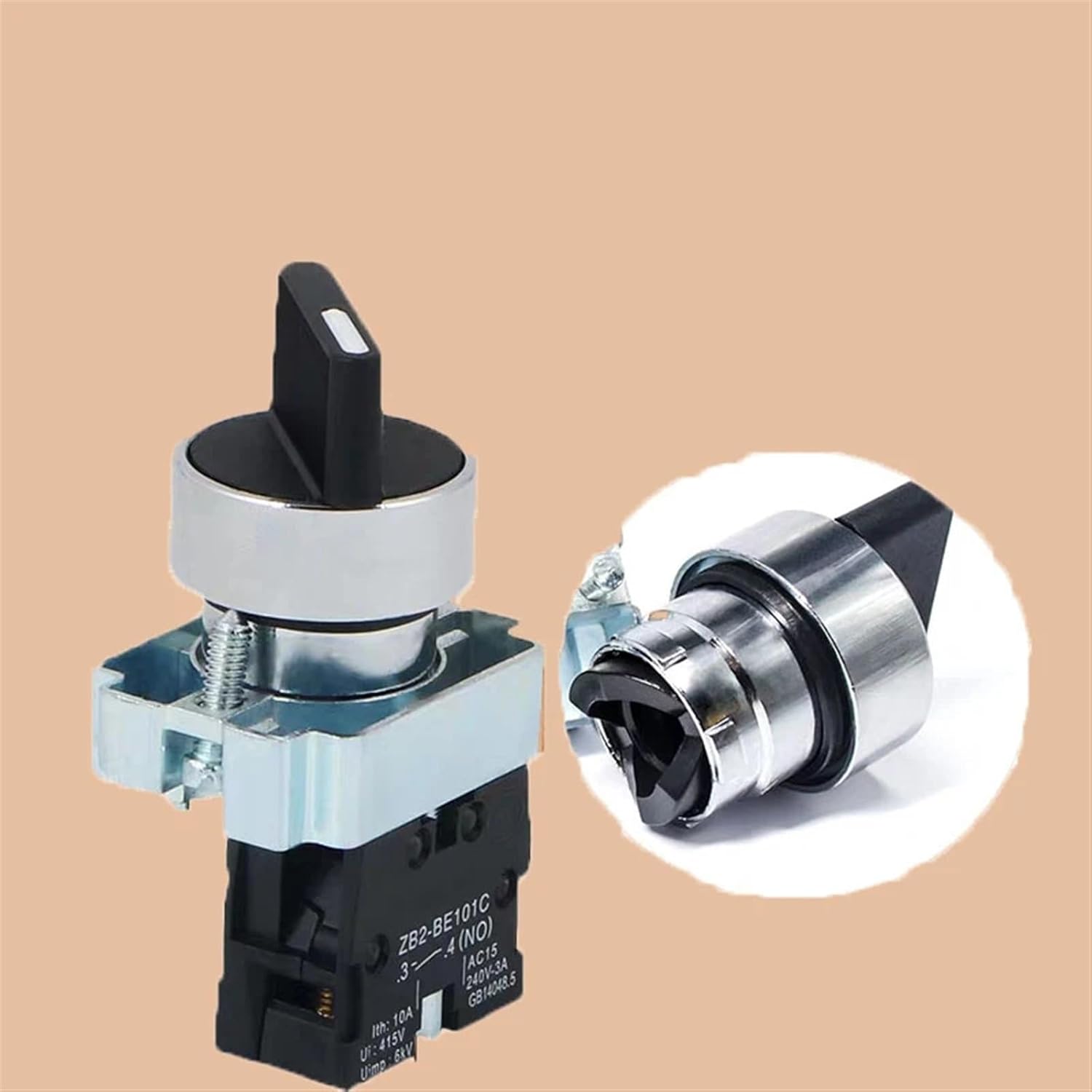 Selector Switch==========Material : plasticSwitch Type : Knob switchModel Number : XB2-BJ21CItem Type : SWITCHESFeatures : Handle switchMounting diameter : 22mmAuxiliary contact : 1NOFeatures : Self-locking typeHandle type : Long handle