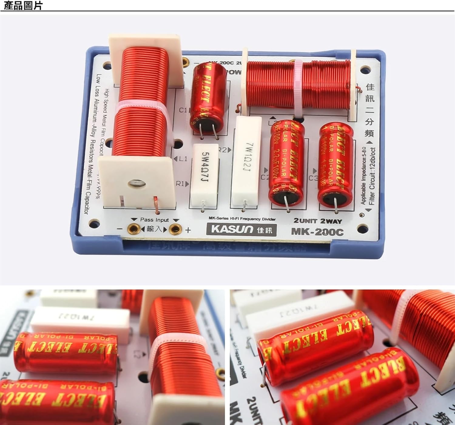 Audio CrossoversSpecificationsProduct Name: 2 Way Frequency DividerCrossover Frequency: 3200HzTweeter :12dB/octWoofer:12dB/octImpedance: 5-8 ohmPeak Power: 160WPackage Included:2PCS Frequency Divider