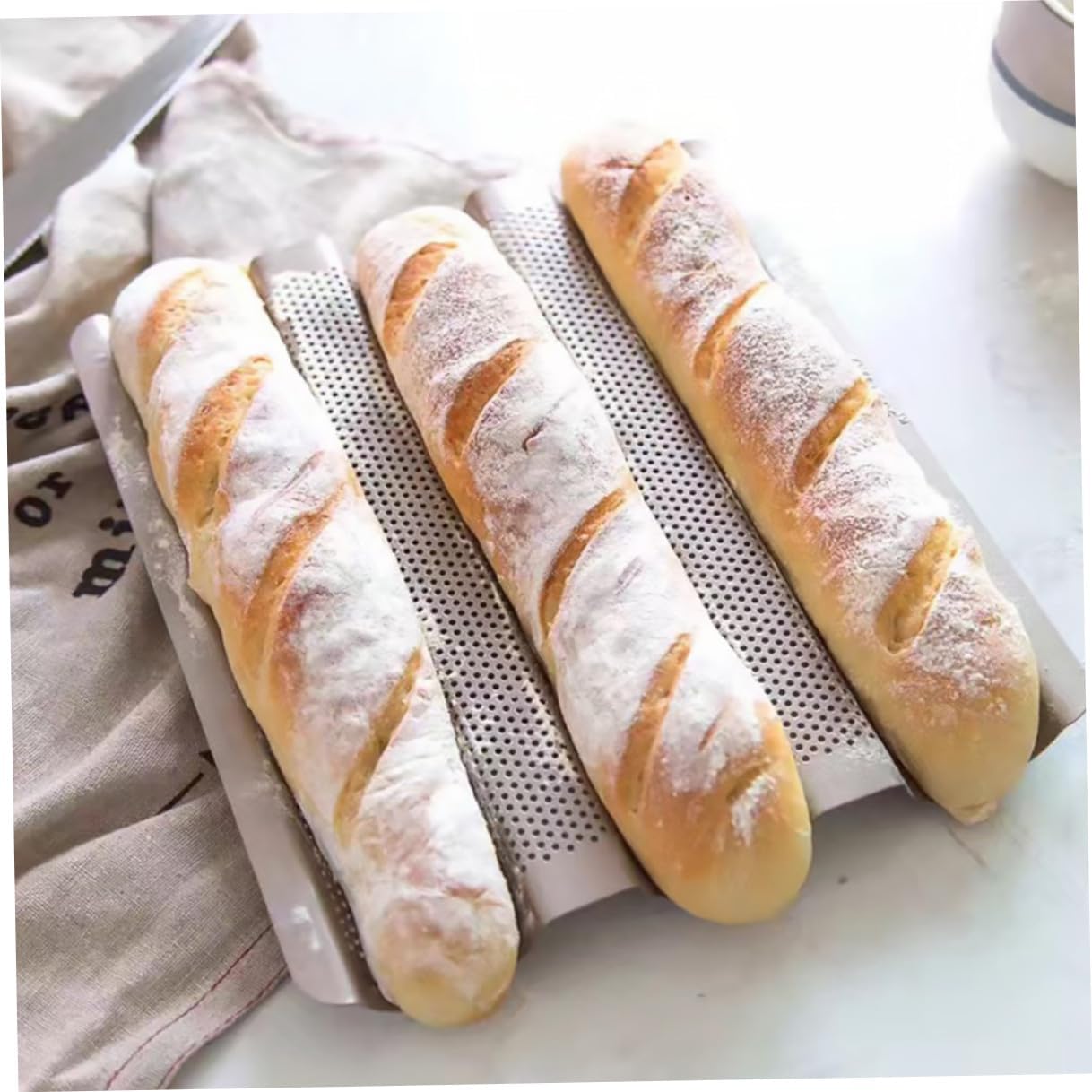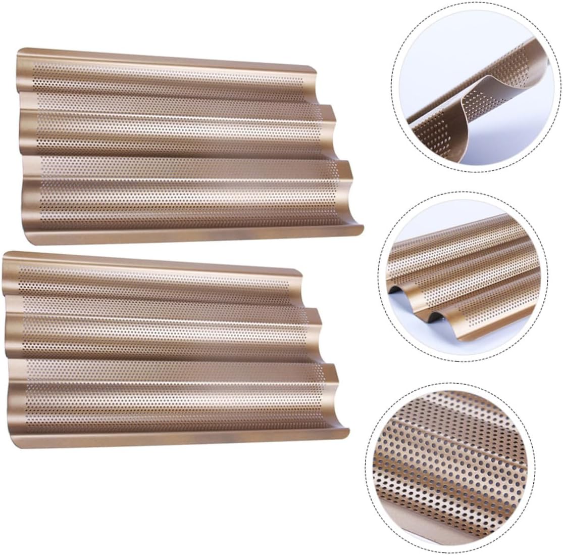 Package List 2 x baking molds Characteristics -Product Info:Bread holder - Size: About 28.50X24.10X2.60cm/ 11.20X9.47X1.02inch. - Material: Carbon steel. - This bread tray allows you to bake 3 loaves at the same time, saving time Bread Baking Pan. - Made of food-grade and safe material, which allows you to easily prepare French bread. - Easy to use, ready to use, completely reusable and nonstick mold pan. - It is very , and healthy, and practical Bakeware Supplies. - , for home or professional bread shop baking use 3 Slot Bread Mold. - GoldGoods InformationBread Baking Pan Made of premium carbon steel, it features good thermal conductivity and heat.bread mold pan This is a non-stick Fresh bread baking , very suitable for making French bread.French Bread The reasonable design makes the bread be heated evenly, and help to make and fluffy bread