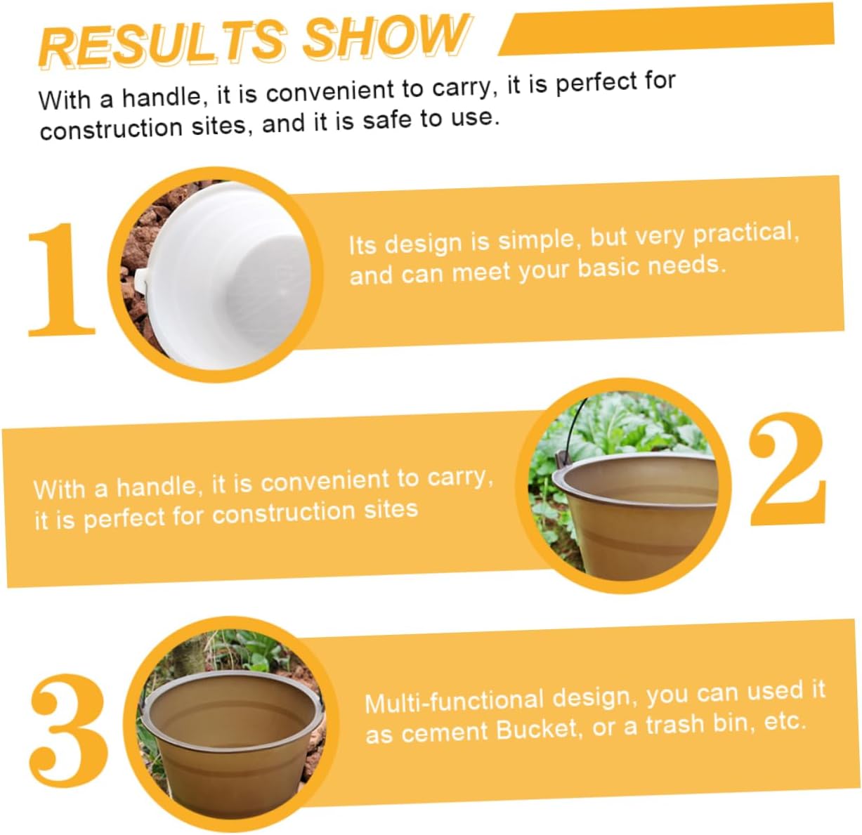 Package Include 2 x Storage Buckets Characteristics - Size: 28.50X28.50X19.00cm/ 11.20X11.20X7.47inch Anti-smashing Storage Barrel. - Material: Plastic Cement Bucket. - Made of plastic material, and for long-time use Anti-fall Cement Bucket. - It is suitable for construction sites, going out for outside building work, etc Anti-fall. - It is not only used as a cement bucket, but also as a great garbage bins Construction Site Bucket. - Thicken, wear-resistant and sun-proof, suitable for long-term outdoor use, Plastic Storage Bucket - This is a good storage bucket, suitable many application scenarios, great to store cement Plastic Cement Barrel.Goods InformationAnti-smashing Storage Barrel If you are looking for a professional and cement bucket, then your research is here.Anti-fall Cement Bucket It is not easy to deform, which brings you of convenience.Bucket for Construction Site That's because our product can meet your needs.Plastic Storage Bucket Using good material, and