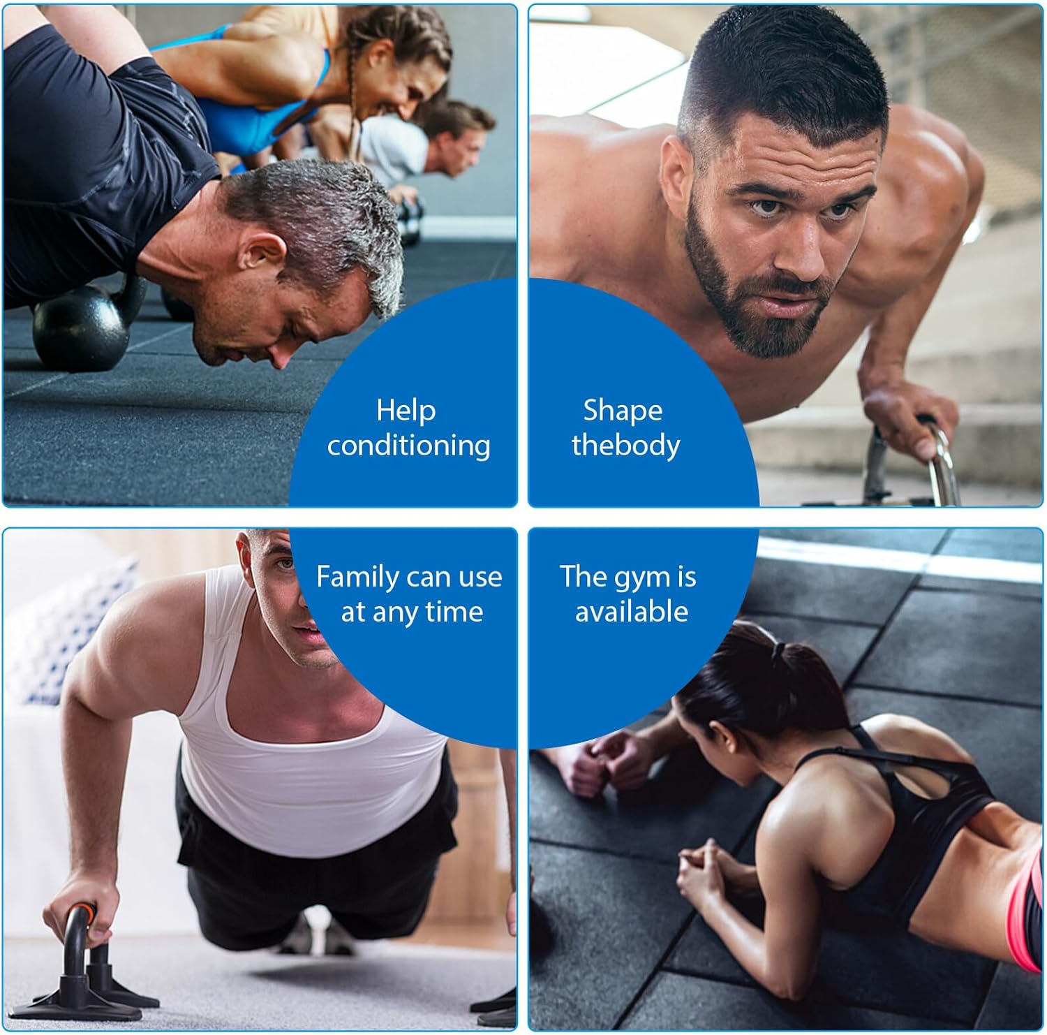 Package List 2 x Push-up Accessories Characteristics -Product Info:Push-up stand -Material: PP, TEP and Pyroxylin push-up grips - Helps to reduce strain on your wrists, helping you perform more effective push ups without wrist gym equipment. - Can protect your hands from injury during exercise, thus ensuring a every time push-up handles. - High strength steel tube is made of good hardness and good bearing capacity push-up bars. - materials, provide a smooth and comfortable grip, anti-skid and sweat-resistant exercise pushup equipment. - overall development of the upper body, abdominal, chest, shoulder and back muscles gym equipment for home.Goods Informationexercise equipment for home The push-up stands are made of strong and durable material, ergonomic design, beautiful shape, anti-skid and they are comfortable to use.Fitness Push-up Stands They are the for you.pushup handles Our push up bars must meet you needs