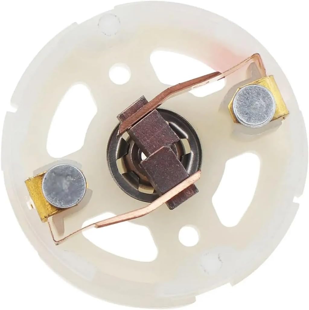 MotorsdescribeMaterial: Metal, PlasticCommutation: Brushfeature:- DC motor brush holder, strong and durable.- Replace R360 R370 R380 R390, DC motor carbon brushes.Product Weight: 5 g / 0.18 ozProduct size (L*W*H): 27*27*18 mm / 1.06*1.06*0.71 inchesColor: SilverApplication: Home appliancesModel:MTR_107Type: MotorProtection function: waterproof