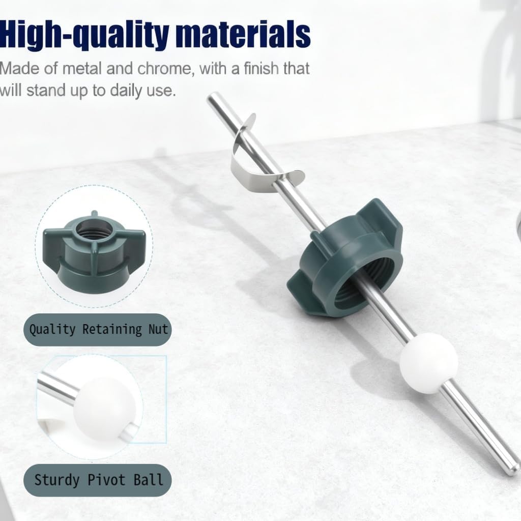Material: Stainless steel and plasticKit: a bathroom pop-up center component and a sink pivot ball rod replacement partNote: Due to manual measurement, there may be some errors in size and weight. Due to the differences between different monitors, there may be slight color difference