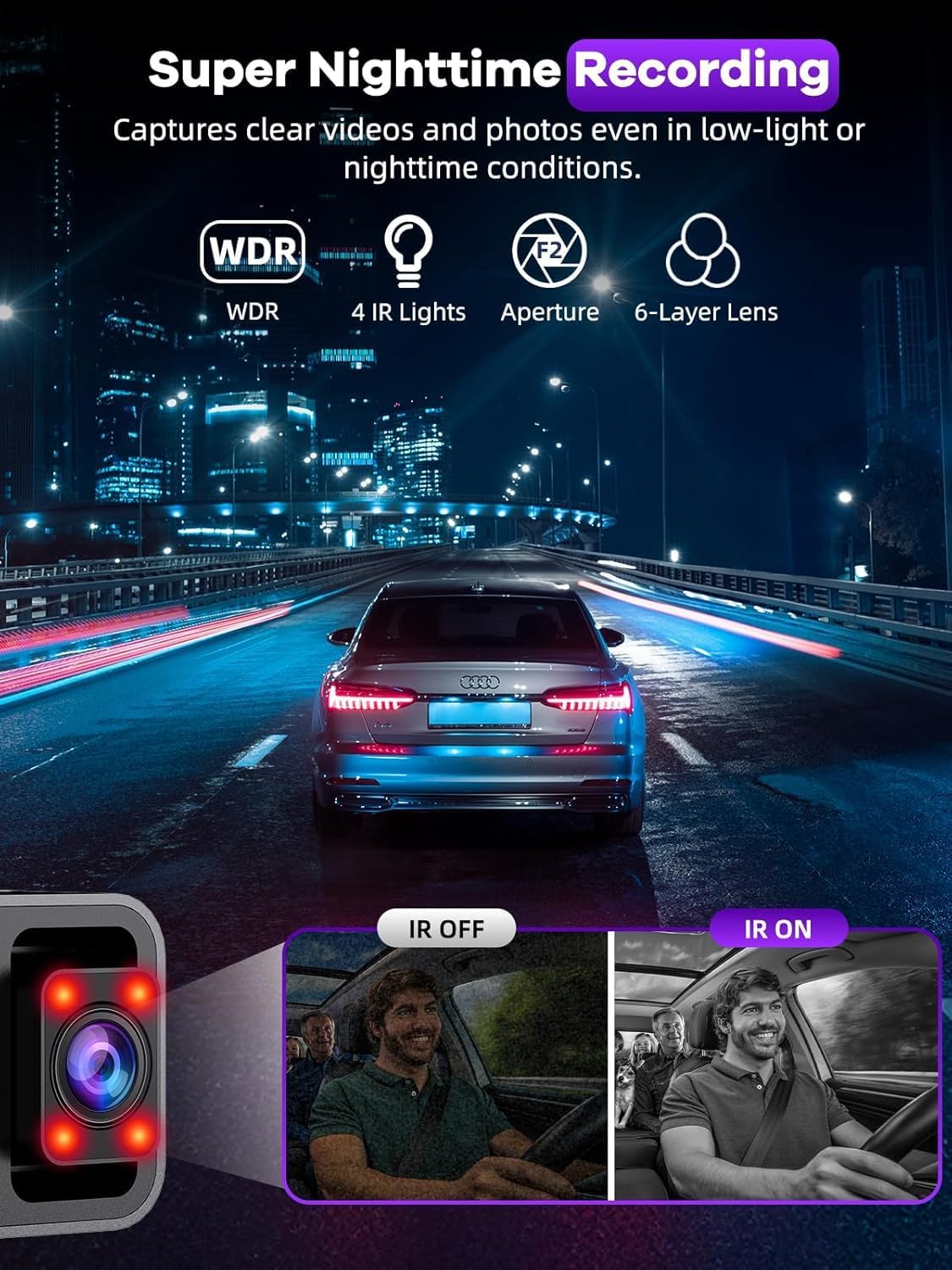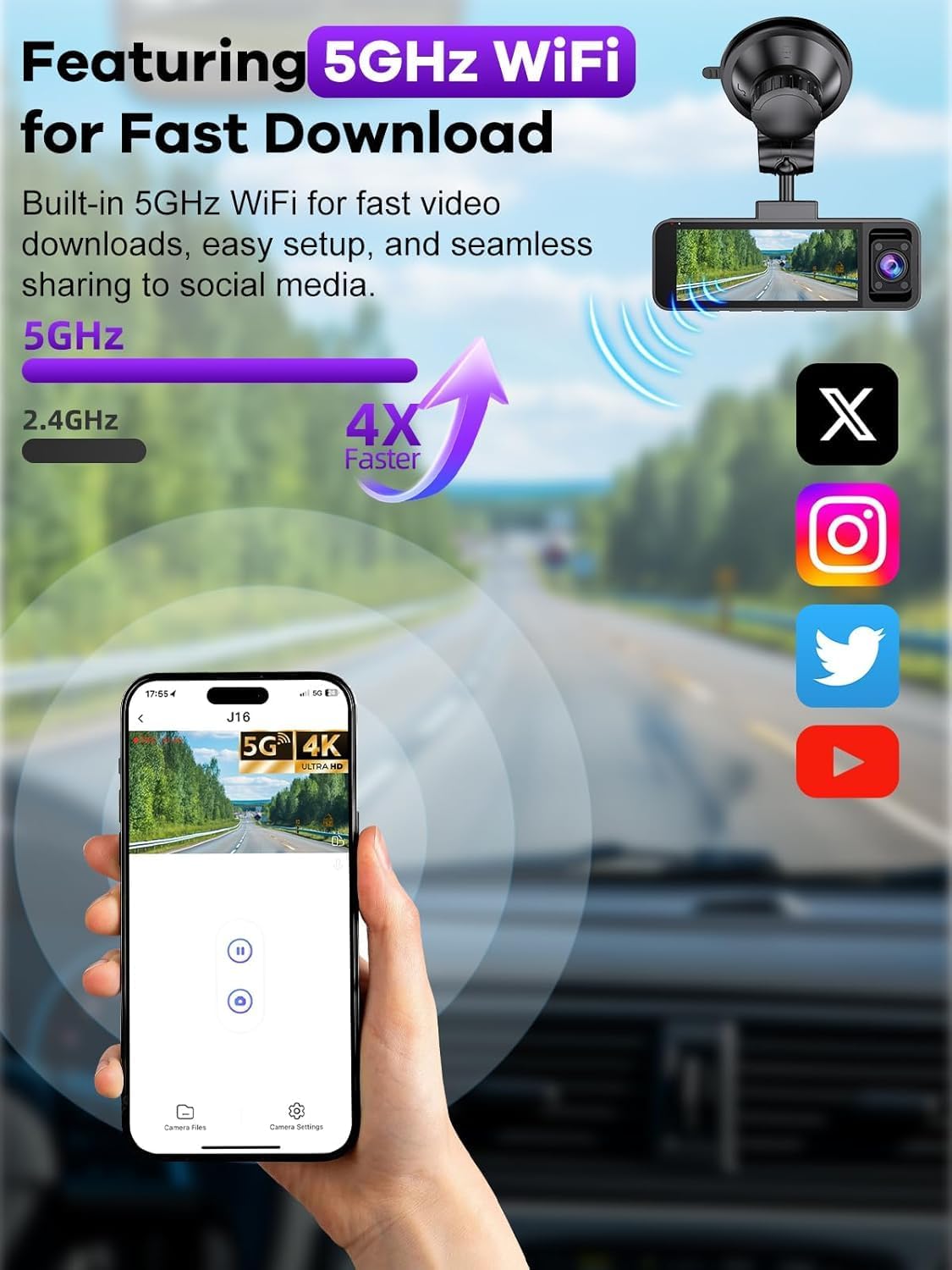4K+2.5K+2.5K Dash Cam Front and Rear Inside