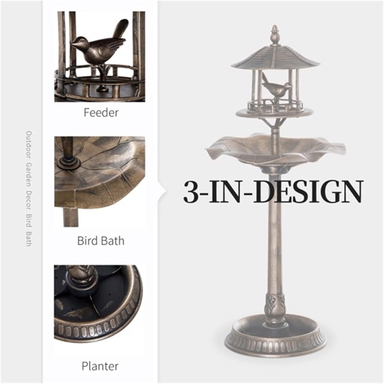 Color: Antique Gold (Bronze) Material: Resin Overall Dimensions: Ø20" x 44.5"H Bowl Dimensions: Ø20" x 3.75"H Housing Dimensions: Ø12.25" Base Dimensions: Ø14.5" Net Weight: 7.5 lbs