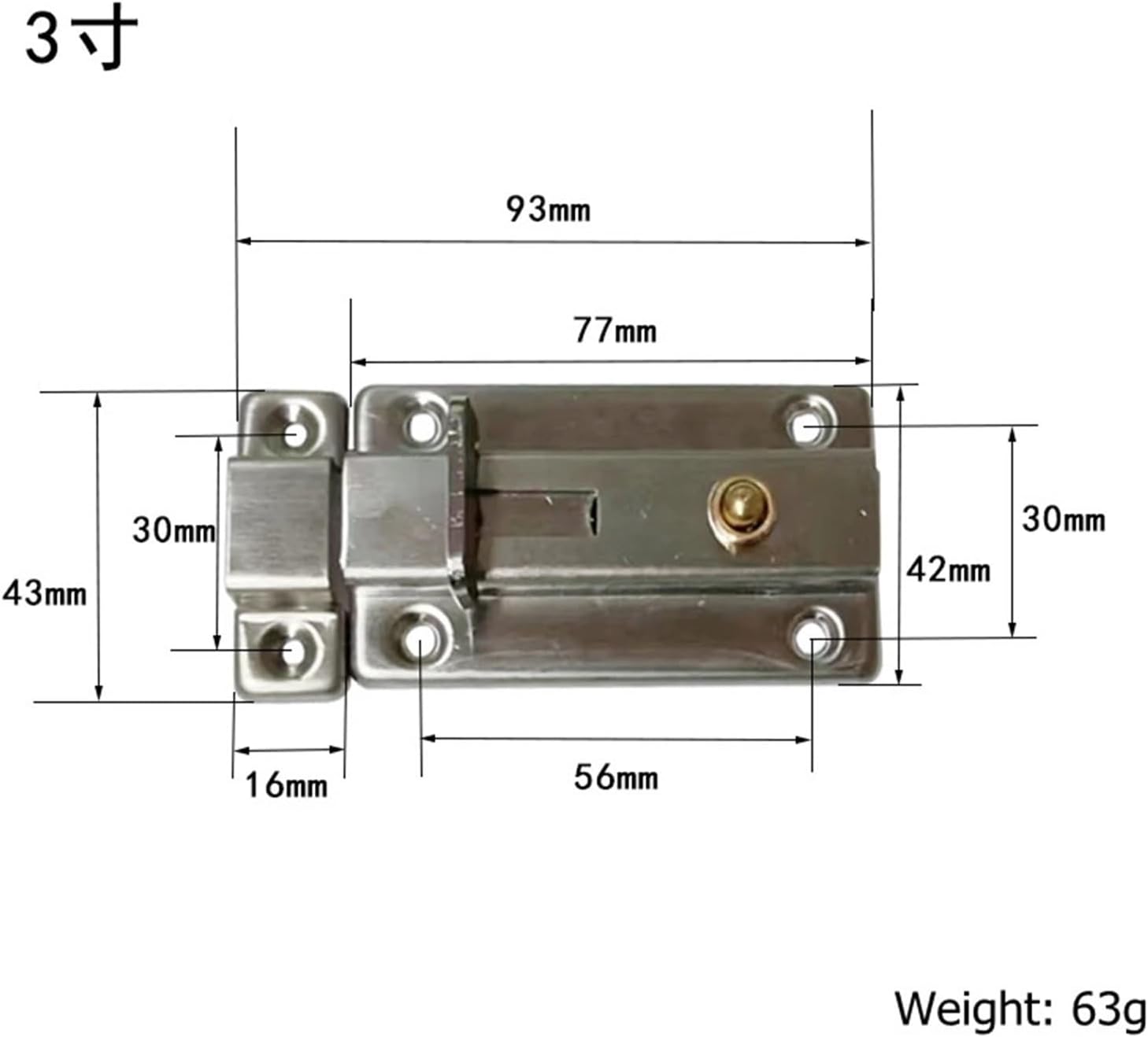Latch3 Inch-Stainless Automatic Spring Door Bolts Latch Stainless Steel Bathroom Wooden Door Thickening Lock Buckle Hardware 1Pcs