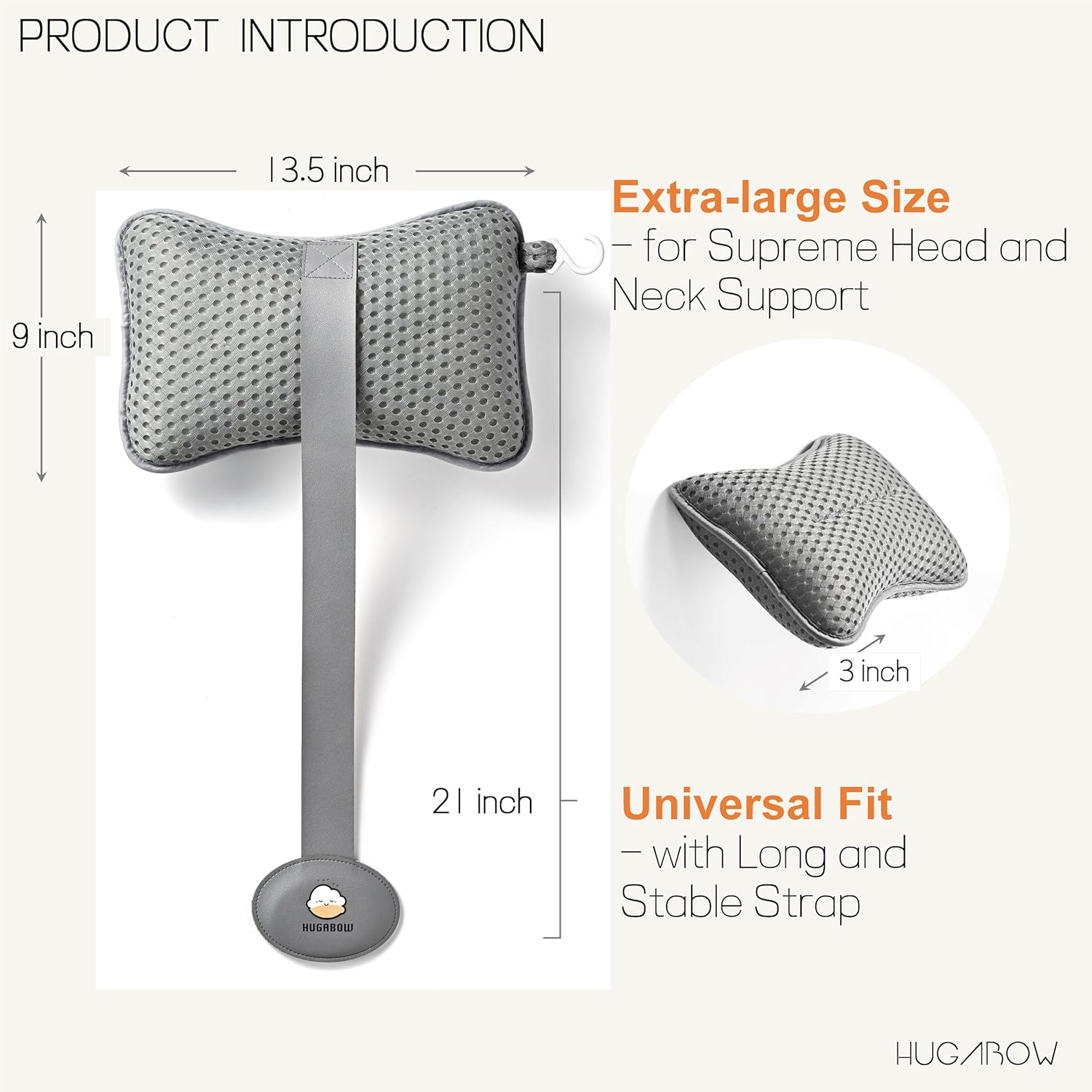 3-Pack Large Pillow for Hot Tub (Grey), Spa, and Chaise Lounge - Universal Headrest & Neck Support Cushion, Adjustable Height with Long Strap, Easy Drying with Hook