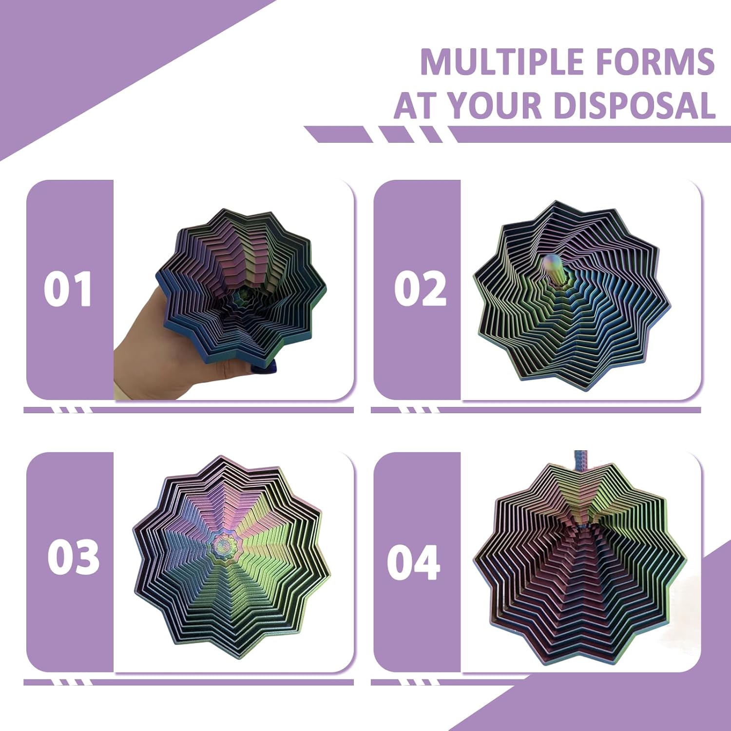 3 Pack Sensory Fidget Star with Handle, 3D Printed Expanded Sensory Fidget Star for Colorful fingertip toys with a rotating spiral design suitable for people with ADHD, children, and adults