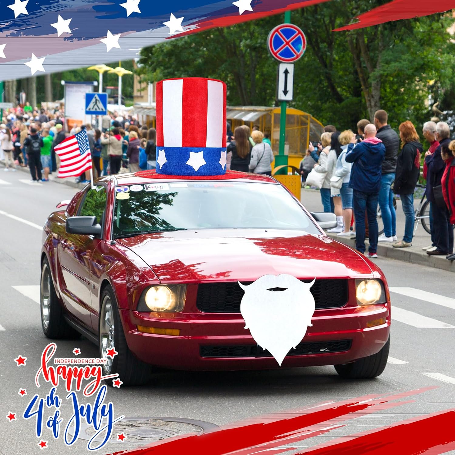 Features: Stand out from the crowd with eye-catching, oversized accessories that ensure your golf cart is unmissable in any parade lineup or festival gathering. No need for additional tools or accessories—everything you need is included! Enjoy a seamless decorating experience, so you can focus on celebrating in style. Specifications: Material: felt Color: red, white, blue Size: Hat: 31.5 x 26 inches Glasses: 51.2 x 15.8 inches Beard: 27.6 x 33.5 inches Package includes: 1 x Patriotic top hat 1 Pair of black glasses frames 1 x White beard 1 x Adhesive dot Notes: Manual measurement, please allow slight errors on size. The color may exist a slight difference due to different screen displays.