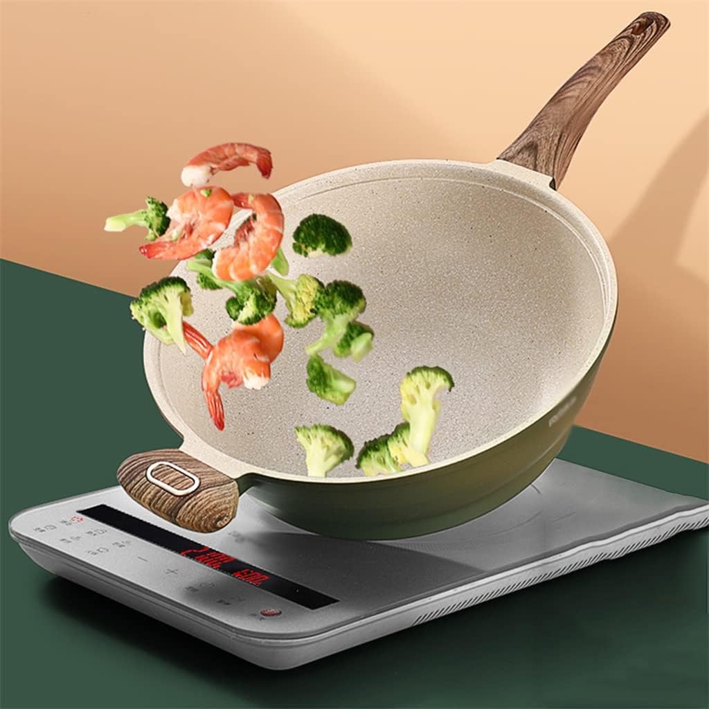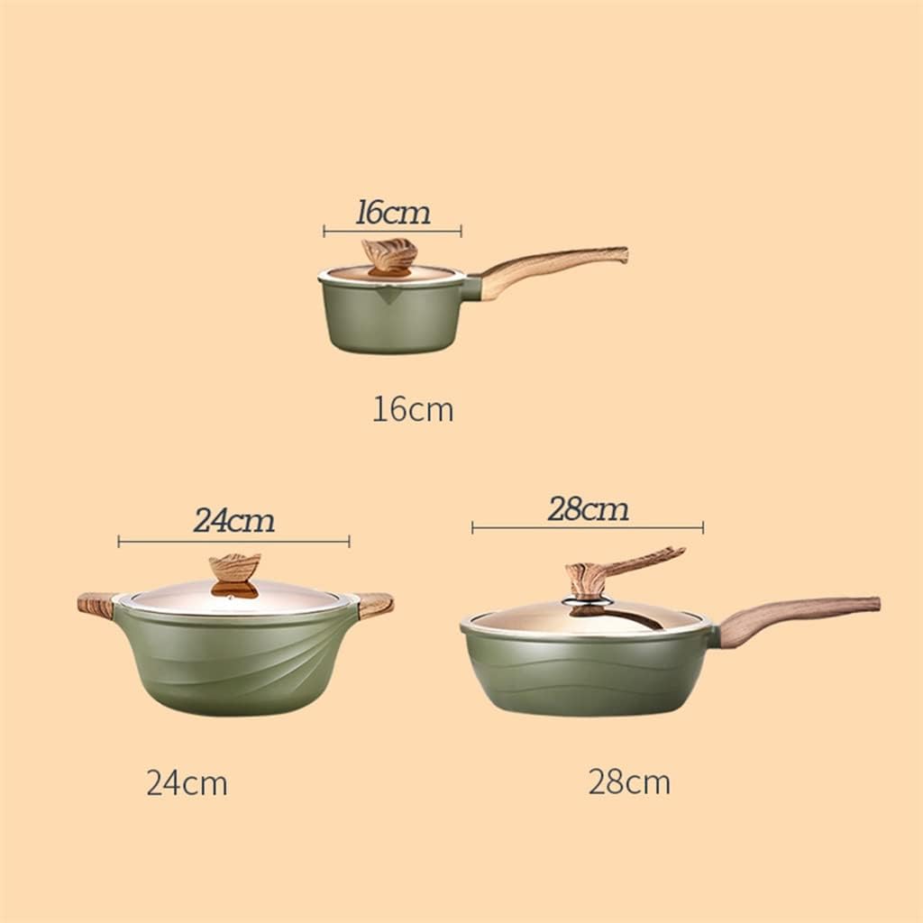 Feature: Humanized anti-scalding handle, comfortable grip, heat insulation and anti-scalding The front wooden handle handle can prevent scalding, and at the same time, it can effectively bear the weight of some dishes when serving Thanks to the practical glass lid, you can easily see the contents of the pot while cooking. The humanized diversion port design makes it easier to pour soup and oil, prevent leakage from the pot, and keep the countertop clean -shot clean, no stains left Material: aluminum alloy 3 pots + 3 lids Package includes: 1 set of pots and pans (other products not included) hint: Please allow slight deviation due to manual measurement. Due to differences between monitors, pictures may not reflect the actual colors of the item. Please refer to the actual product. Each piece designed with durability and a sleek finish that will have you cooking your absolute best. Measurement markings provide you with ease of use every time