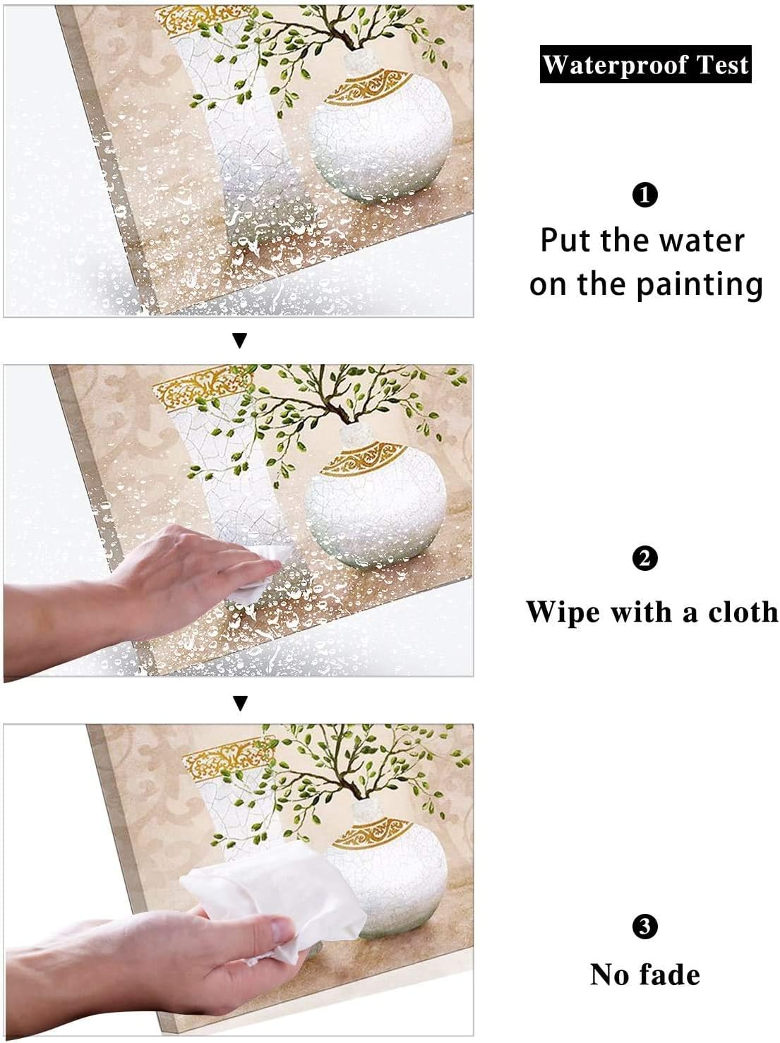 Size: 30x30cm x 3 piece (12x12 inch x 3 panels)Waterproof: YesECO-ink print: YesUV resistant: YesMaterial: Wood and CanvasType: Giclee PrintedReady hanging, no handy work to screw the accessory kits.PACKAGE:All canvas wall art are wrapped on frames, bracket mounted, protected by plastic bags and carton box.HANGING:Arrange the positions, draw the center point on its top line, and then nail 3/5-inch under the point, aim the bracket and hang.P.S.: The bracket has sawtooth for balance adjustment.3 YEARS WORKMANSHIP:- We would like to accept return and refund for you, please contact us!- If this canvas picture scratched or damaged, please help tell us ahead and it doesn't affect the refund.CUSTOMIZED PRINTING:Our canvas prints can also be custom-made for your own size, photos or pictures, contact us! APPLICATIONS:This museum-quality wall art uses for living room, bedroom, kitchen, dining room, bathroom, hallway, guest room, sitting room, office, cave, dorm, hotel, cafe, restaurant, bar, guesthouse, KTV, Gym or upon fireplace, behind couch in your nice house.PURPOSES:- This is an modern decorative way to highlight your unique artsy taste.- Stunning home decorations that earning compliments from your guests.- Contemporary wall paintings for any space to remove boring blank.- Bring in a peaceful dream world that relaxing and inspiring your family everyday.There's one more canvas painting to make your new home completed.Even a small warm piece can make a difference in your life.