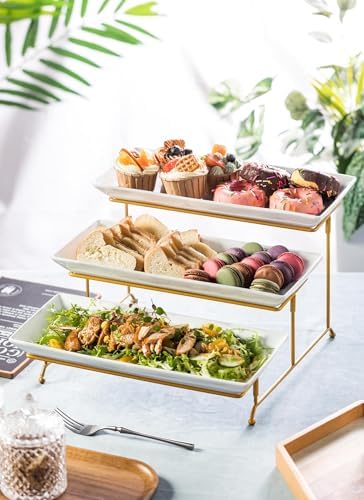3-Tier Collapsible Serving Stand Set - Elegant Tiered Tray for Appetizers, Fruits, Desserts & Cupcakes - Sturdy Rack for Parties, Events & Entertaining