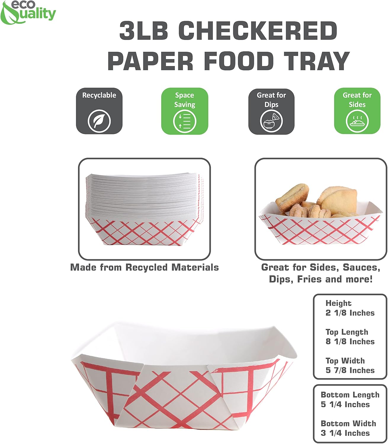 EcoQuality Disposable Paper Food Tray's ★ Great way to serve your favorite guest's★ One-time use disposable makes for an easy cleanup★ Microwave Safe★ Recyclable★ Compostable★ Eco-Friendly Product✔ Great for Parties, BBQ and Picnic's✔ Easy to use packaging✔ Grease / Oil Proof✔ Great for Hot or Cold FoodHere at EcoQuality we encourage everyone to Recycle!Comes in a 300 Count Packaging straight to the door!