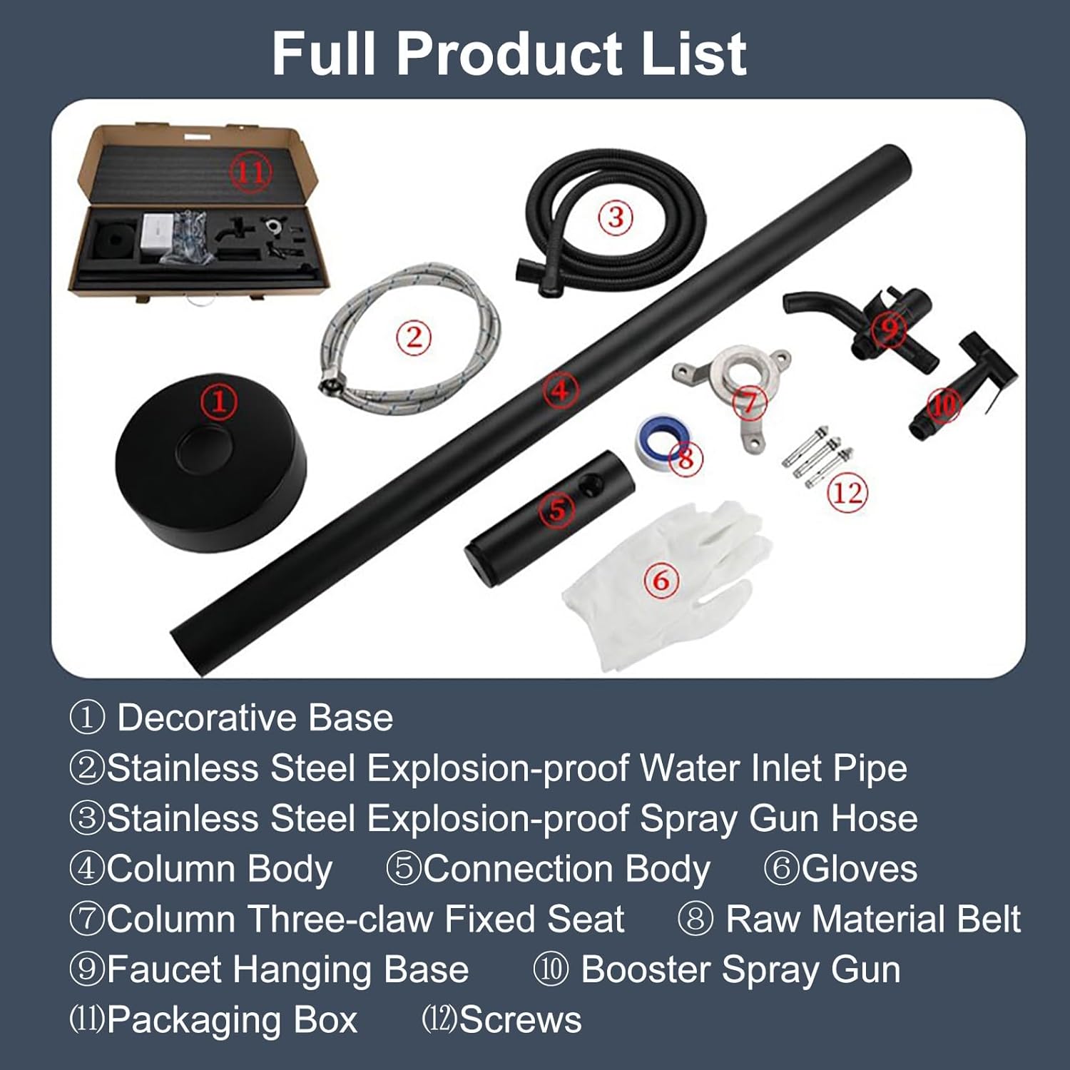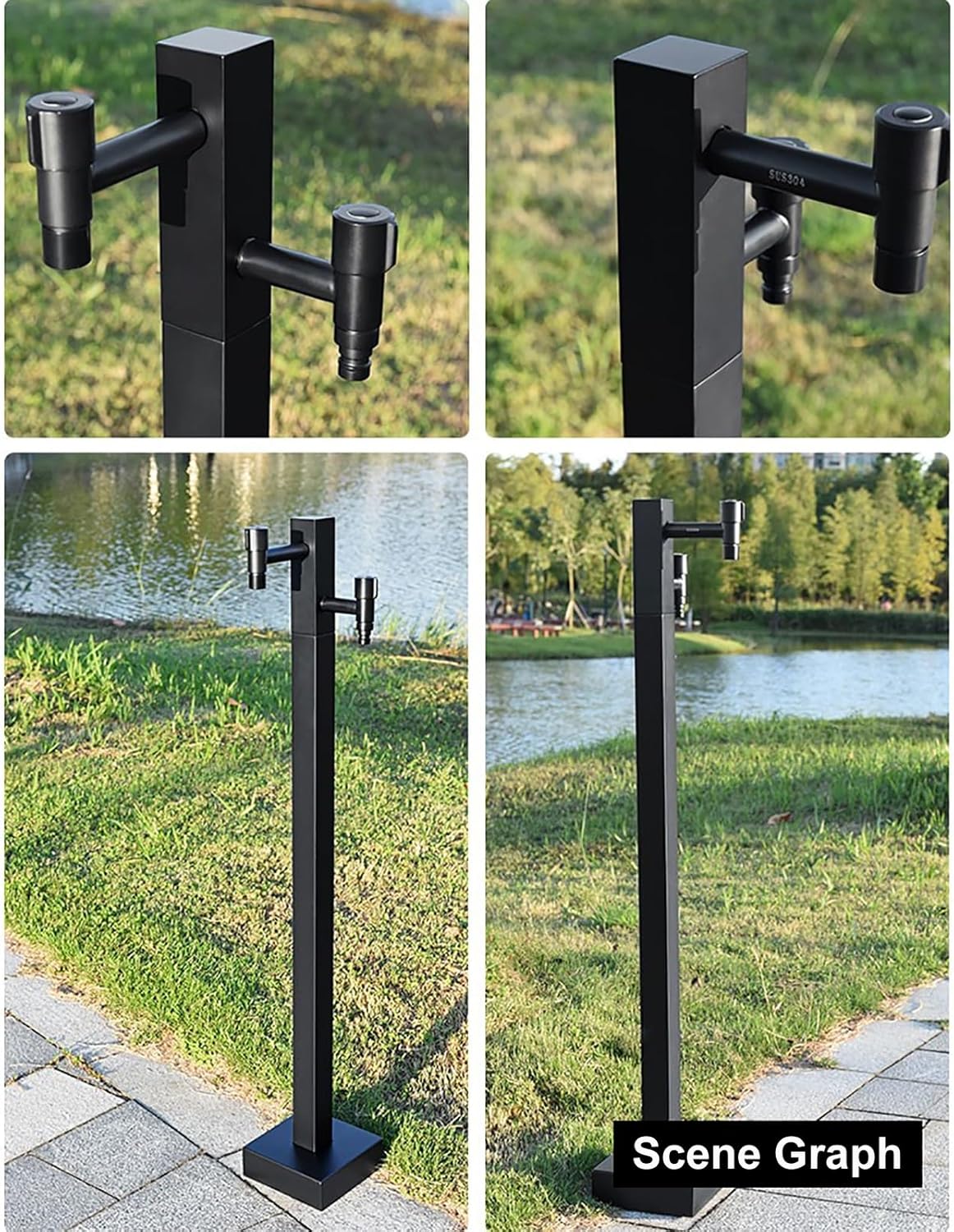 Our stainless steel water column is designed for versatility and durability, making it an essential addition to any outdoor space. Whether you need a reliable water source for your garden, park, farm, school, or industrial area, this water column allows for easy connection to your water supply at any time. **Key Features:** - **Dual-Purpose Water Inlet:** The water column offers two installation options. Connect the hose at the bottom for a direct injection or use the side opening for added flexibility. - **Variety of Faucet Styles:** Choose from a range of faucet options, including dual faucet, spray gun faucet, and two-hole faucets, all crafted from high-quality stainless steel for longevity and resistance to rust. - **Multifunctional Booster Spray Gun:** Our booster spray gun faucet features three adjustable water modes—linear, shower, and spray—allowing you to customize your watering experience. - **Secure Installation:** The column is equipped with a sturdy three-claw fixing base, complete with pre-drilled holes for easy installation using the mounting accessories provided. - **Elegant Decorative Cover:** The round or square decorative cover seamlessly conceals the drilled base, enhancing the aesthetic appeal of your outdoor setup. **Specifications:** - **Water Column Material:** Stainless Steel - **Faucet Material:** Stainless Steel - **Installation Methods:** Side and Bottom Inlet - **Color:** Black **Included in the Package:** - Water Column with Faucet - Water Inlet Pipe - Decorative Base - Essential Mounting Accessories This stainless steel water column is perfect for anyone looking to enhance their outdoor experience with a reliable and stylish water source. Whether for practical use in agriculture or enhancing your garden's functionality, this product offers both efficiency and visual appeal.