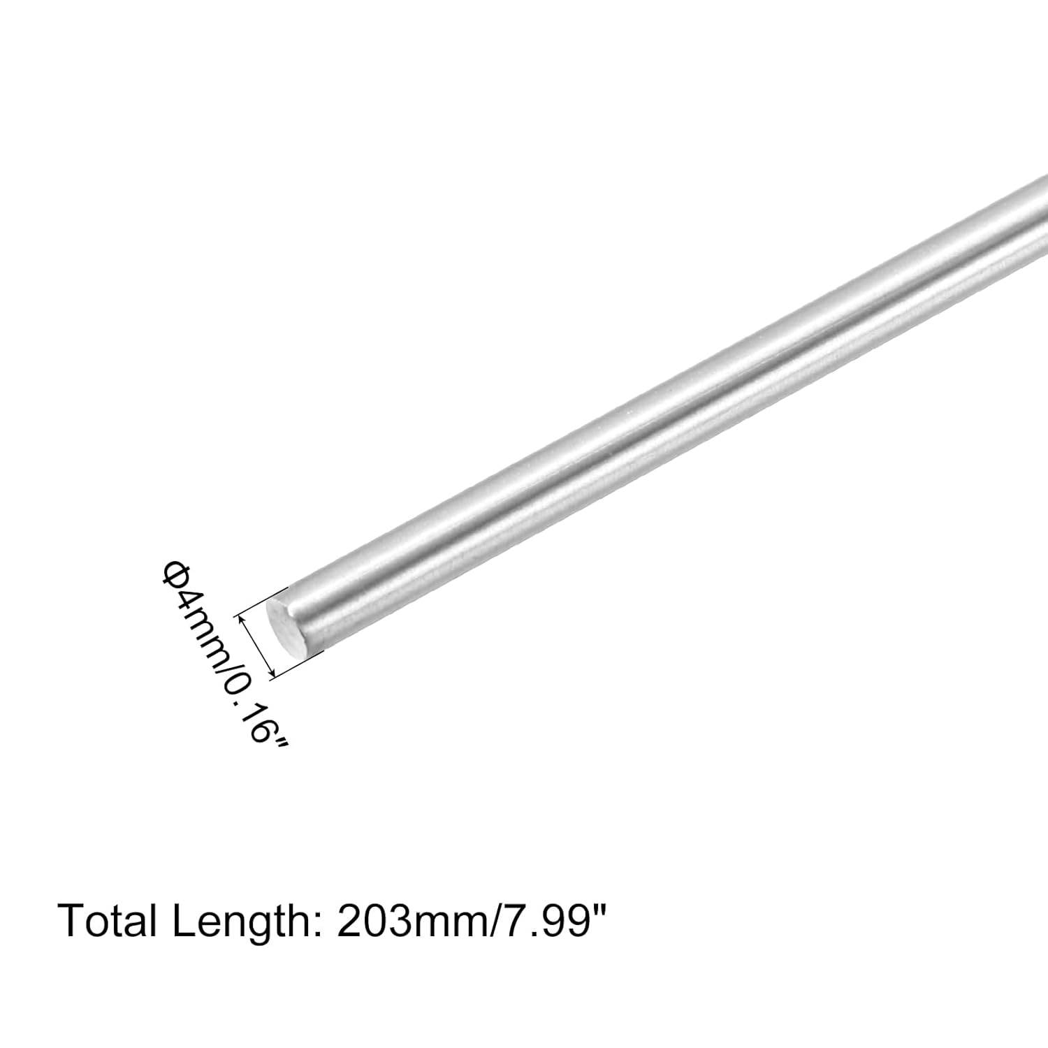 What is it? The stainless steel bar is ideal for DIY and can be used for various model shafts, drive shafts, engine shafts, short support shafts, pocket models, ship models, model cars, etc. What will I receive? Material: 304 stainless steel. Colour: Silver Tone Shaft diameter: 4 mm (0.16 inches). Shaft Length: 203 mm (7.99 inches). Pack of 5 x Stainless Steel Round Bar What are the benefits of the product? High hardness 304 stainless steel, strongly resistant to rust and corrosion, sturdy and durable. The surface is smooth, easy to work with, without cracking, keeps the car normal and working efficiently, and the solid shell easily overcomes difficulties. How to use it? These bars are easy to cut and can be reduced to any desired size as needed. What should I notice? Please allow 1-5mm error due to manual measurement.