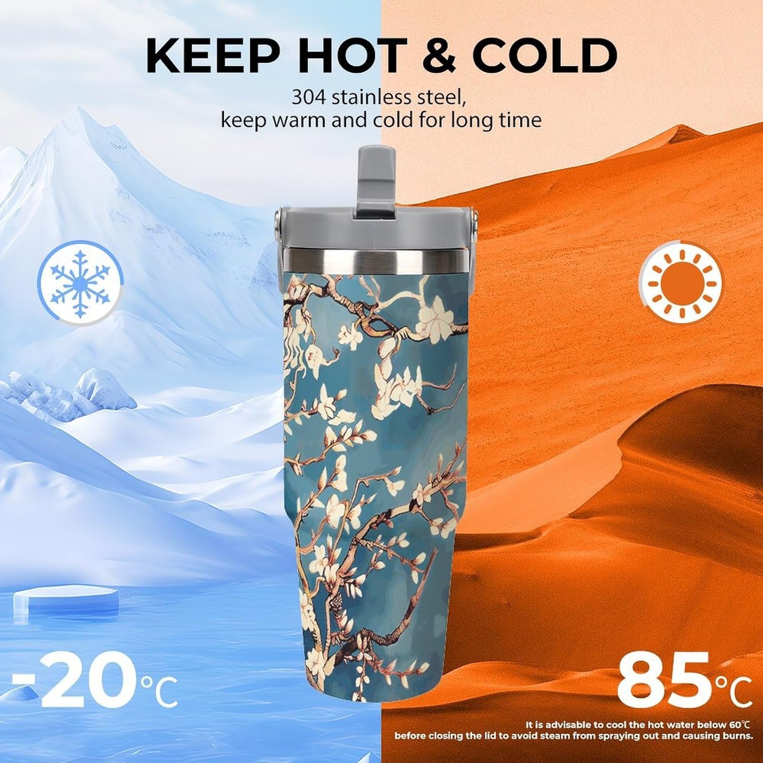 Our Almond Blossom travel water bottle is made of food-grade stainless steel. The wide mouth design makes it easy to clean and add ice, and the powder-coated exterior is non-slip and durable, ensuring driving safety.Whether you prefer sipping or quenching your thirst, this personalized insulated mug has you covered. Featuring a splash-proof straw design, a sealing ring securely holds the reusable straw, and a drinking spout and full-coverage lid for enhanced leak-proof performance, this mug allows you to easily carry ice water to work, meetings, the gym, or on trips.You can give it to your friends and family as a birthday, Mother's Day, Father's Day, New Year's, Thanksgiving, and holiday gift. It's a thoughtful present.