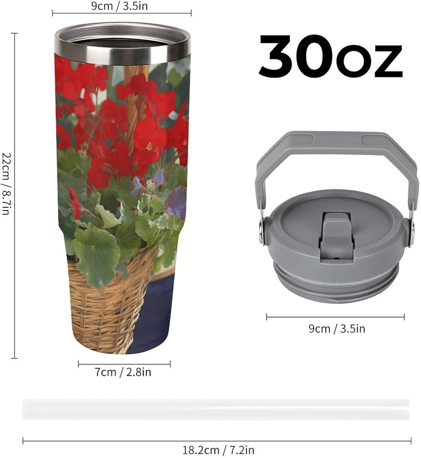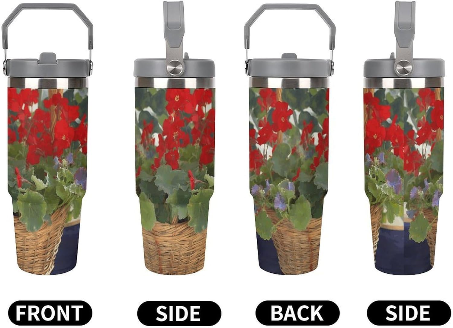 Our Geranium Basket travel water bottle is made of food-grade stainless steel. The wide mouth design makes it easy to clean and add ice, and the powder-coated exterior is non-slip and durable, ensuring driving safety.Whether you prefer sipping or quenching your thirst, this personalized insulated mug has you covered. Featuring a splash-proof straw design, a sealing ring securely holds the reusable straw, and a drinking spout and full-coverage lid for enhanced leak-proof performance, this mug allows you to easily carry ice water to work, meetings, the gym, or on trips.You can give it to your friends and family as a birthday, Mother's Day, Father's Day, New Year's, Thanksgiving, and holiday gift. It's a thoughtful present.