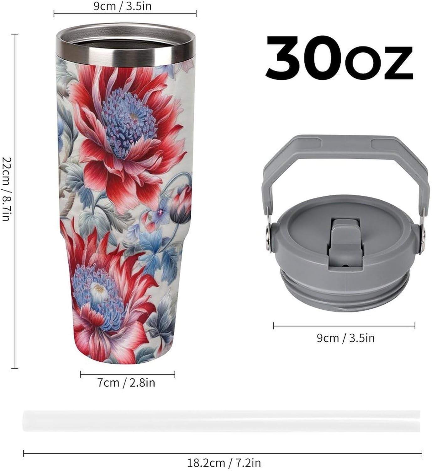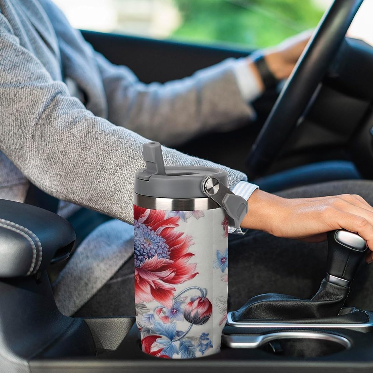 Our Red And Blue Flowers travel water bottle is made of food-grade stainless steel. The wide mouth design makes it easy to clean and add ice, and the powder-coated exterior is non-slip and durable, ensuring driving safety.Whether you prefer sipping or quenching your thirst, this personalized insulated mug has you covered. Featuring a splash-proof straw design, a sealing ring securely holds the reusable straw, and a drinking spout and full-coverage lid for enhanced leak-proof performance, this mug allows you to easily carry ice water to work, meetings, the gym, or on trips.You can give it to your friends and family as a birthday, Mother's Day, Father's Day, New Year's, Thanksgiving, and holiday gift. It's a thoughtful present.