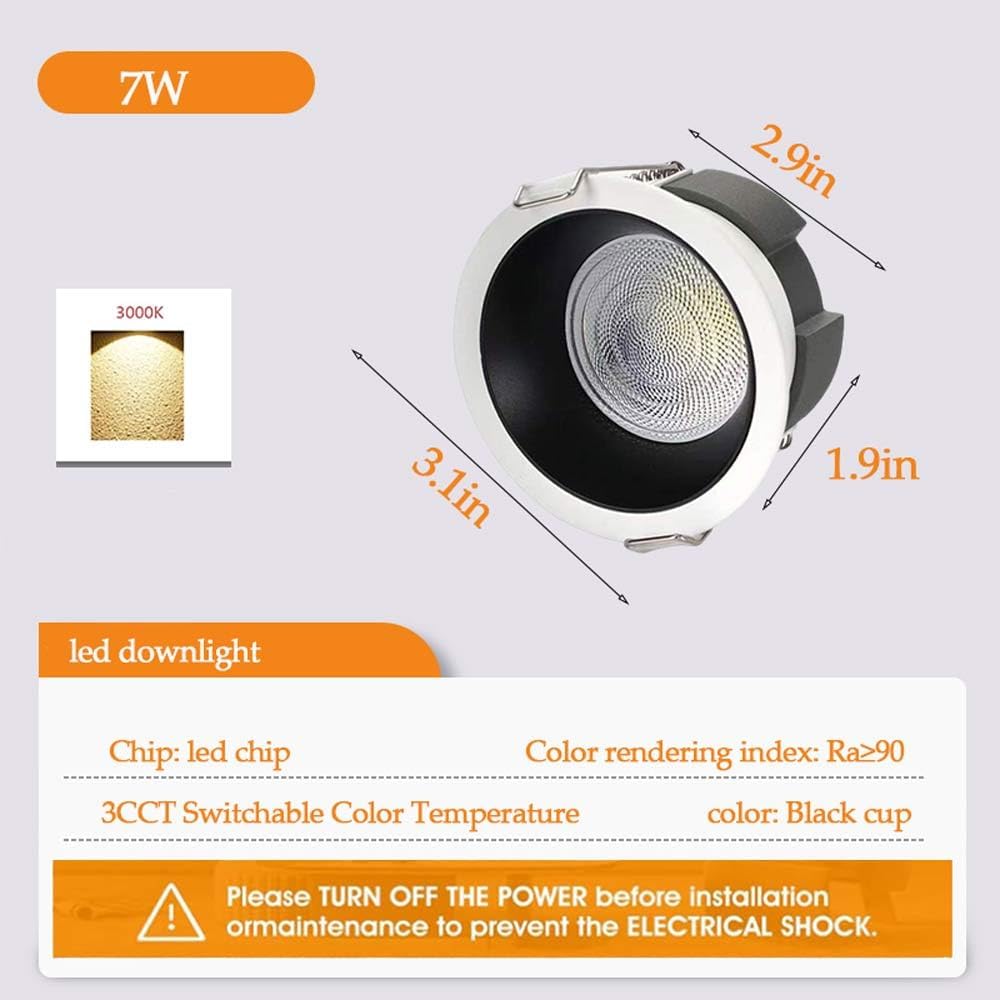 product description1. Health, flicker, eye protection, and quick activation.2. Built in high-power LED driver, imported COB chip, good heat dissipation, minimal light attenuation.Product Type: Concert/Drinking Water Light Ceiling Light/Embedded Pendant Light/Embedded Tilt LightFixed color: whiteMaterial: Aluminum+AcrylicSize information: (refer to size chart)Power: 7W, 12W,7W, surface diameter: 3.1 inches, height: 1.9 inches, opening size: 2.9 inches12W, surface diameter: 4.1 inches, height: 2 inches, opening size: 3.7-4.3 inchesColor temperature: 3000K, 4000K, 6000K, 3 color temperatures can be switchedColor rendering index: RA≥90Light bulb type: LEDNumber of light sources: 1Voltage: 110V-240VFireproof area: 10 square meters, 115 square metersSpecific uses: Suitable for study rooms, corridors, dining rooms, storage rooms, bedrooms, living rooms, corridors, exhibition halls, balconies, and hotel rooms.This package includes:The packaging includes * 3installation accessoriesNotes:1. Please ensure that the power is turned off before installation.2. Please confirm the size before purchasing.