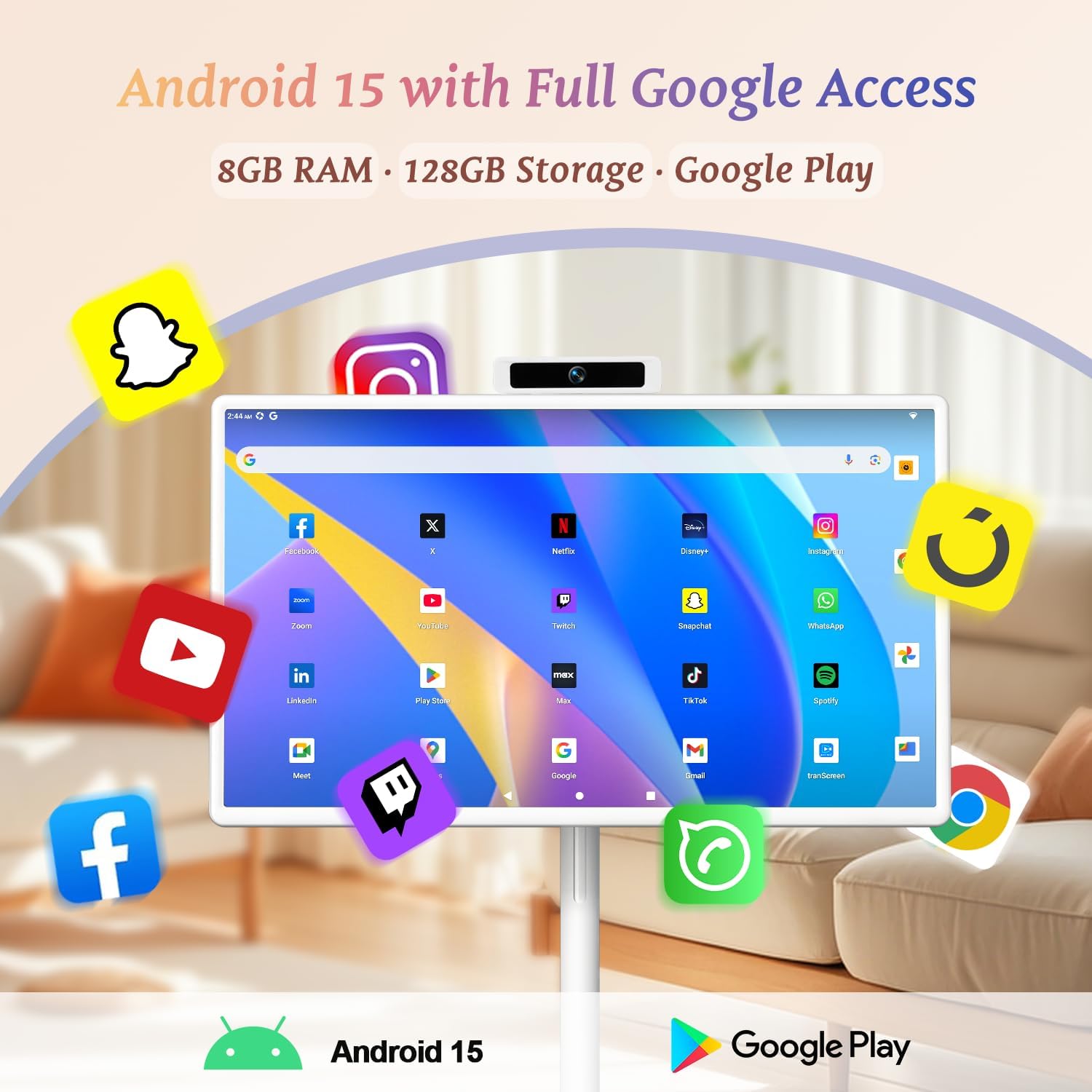 | Additional Features | Android 15 Smart System; Built-In Camera and Speakers, Built-In Rechargeable Battery; Fully Charge in 4 Hours, Touchscreen Display; Height Adjustable & Rotatable Screen |