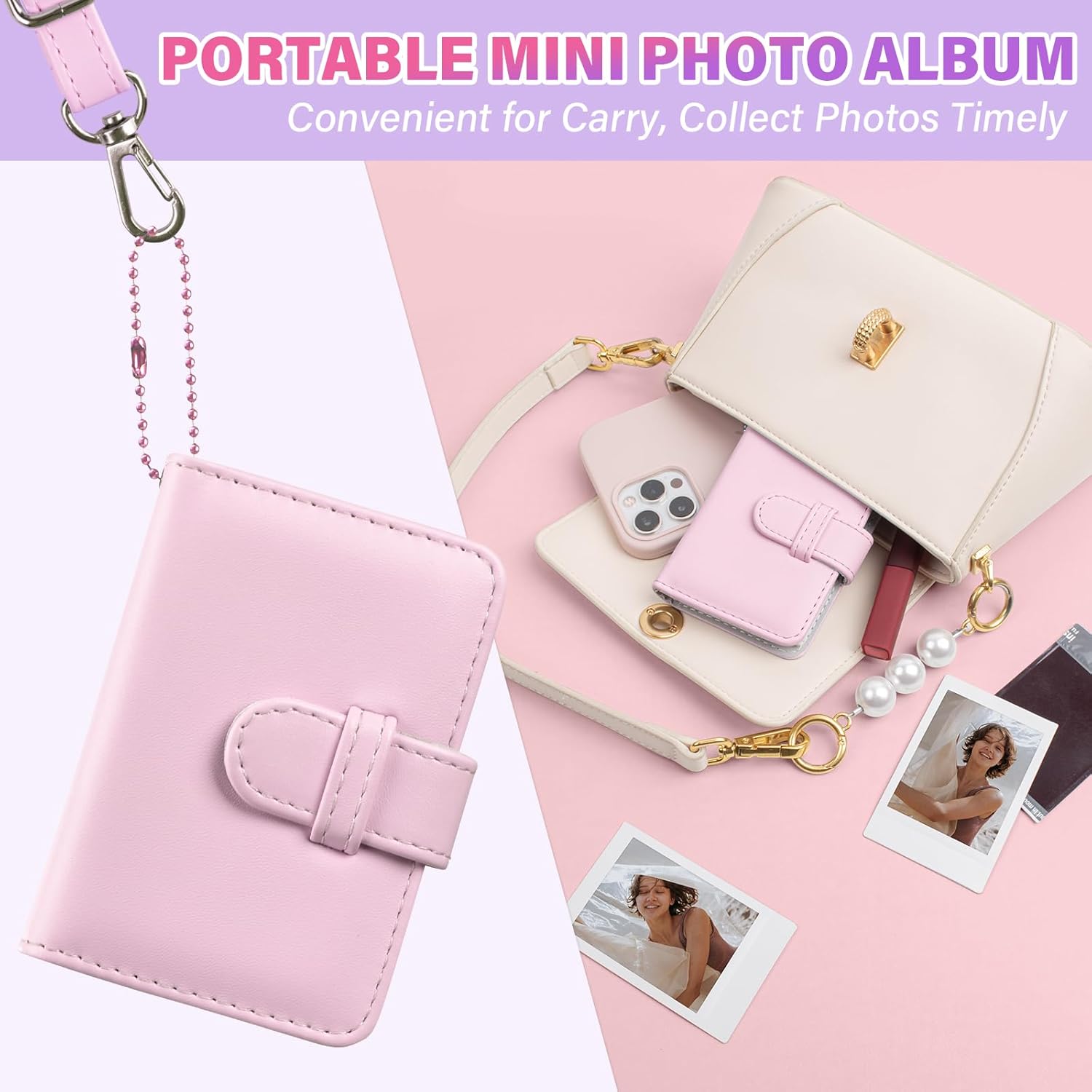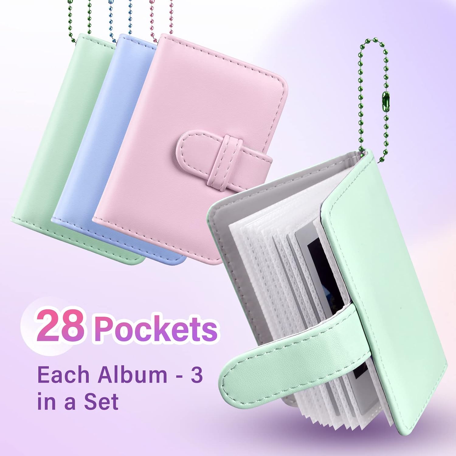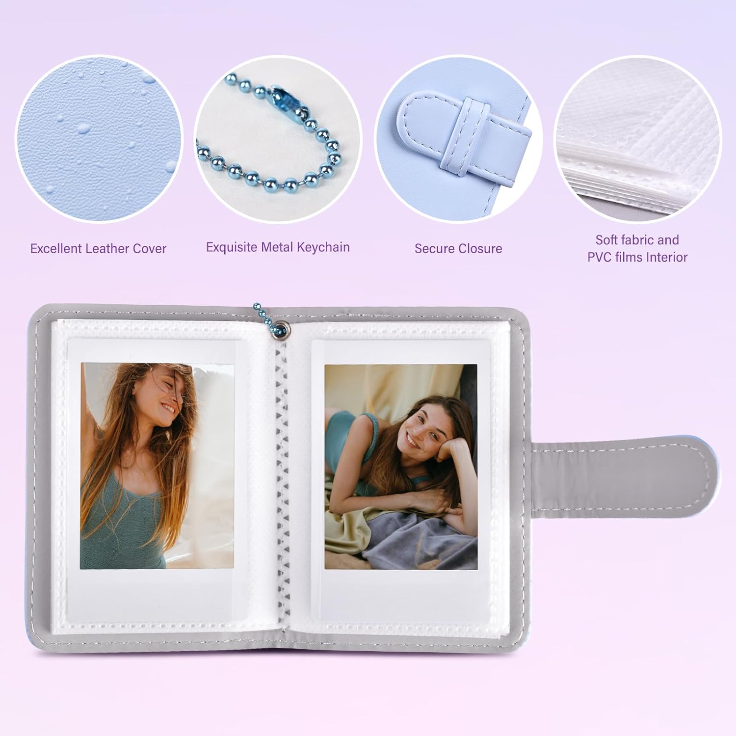 | Style | Small pocket size photo album, portable with keyring, nice color |