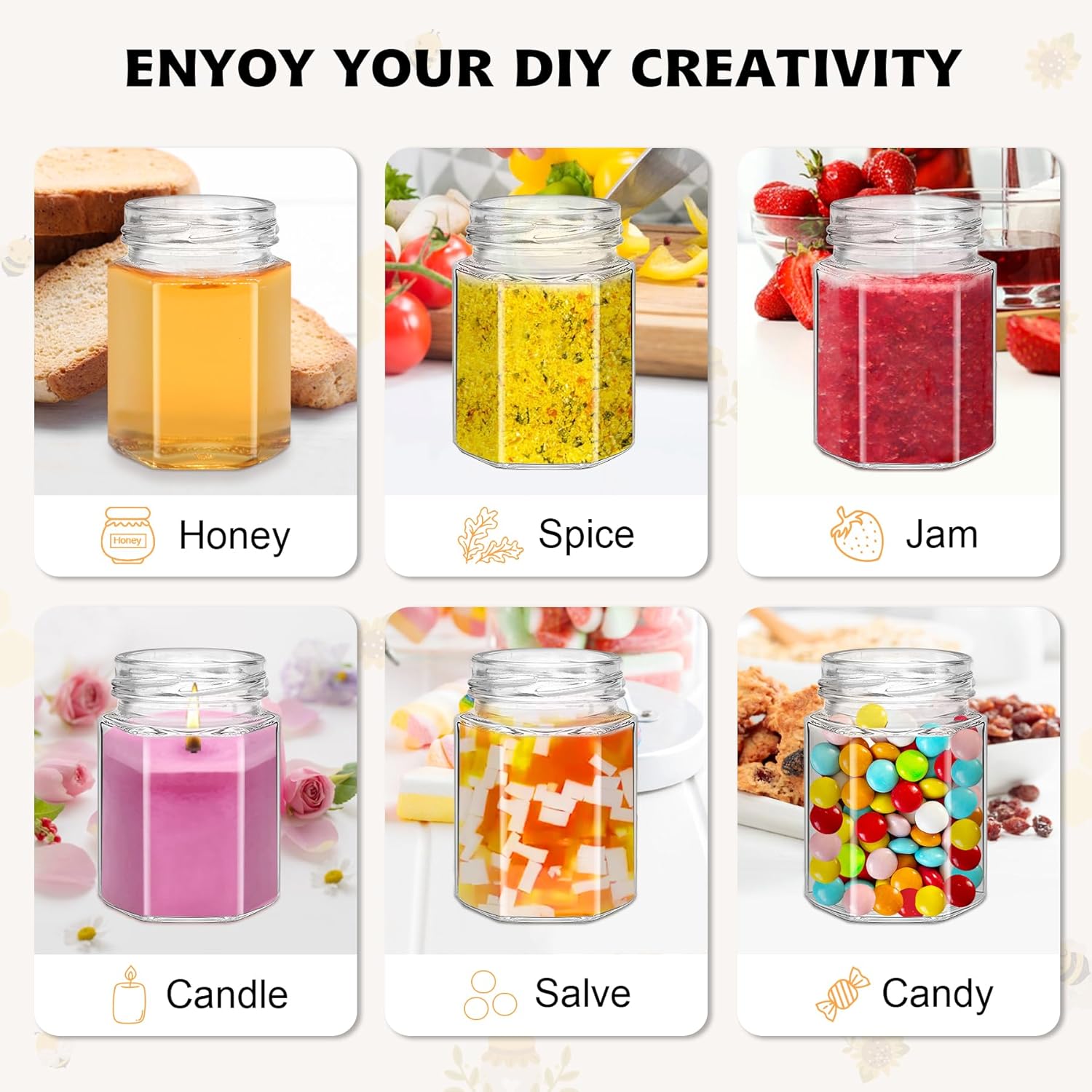 | Recommended Uses For Product | Food storage, gifts, daily use, crafts, beauty products |
