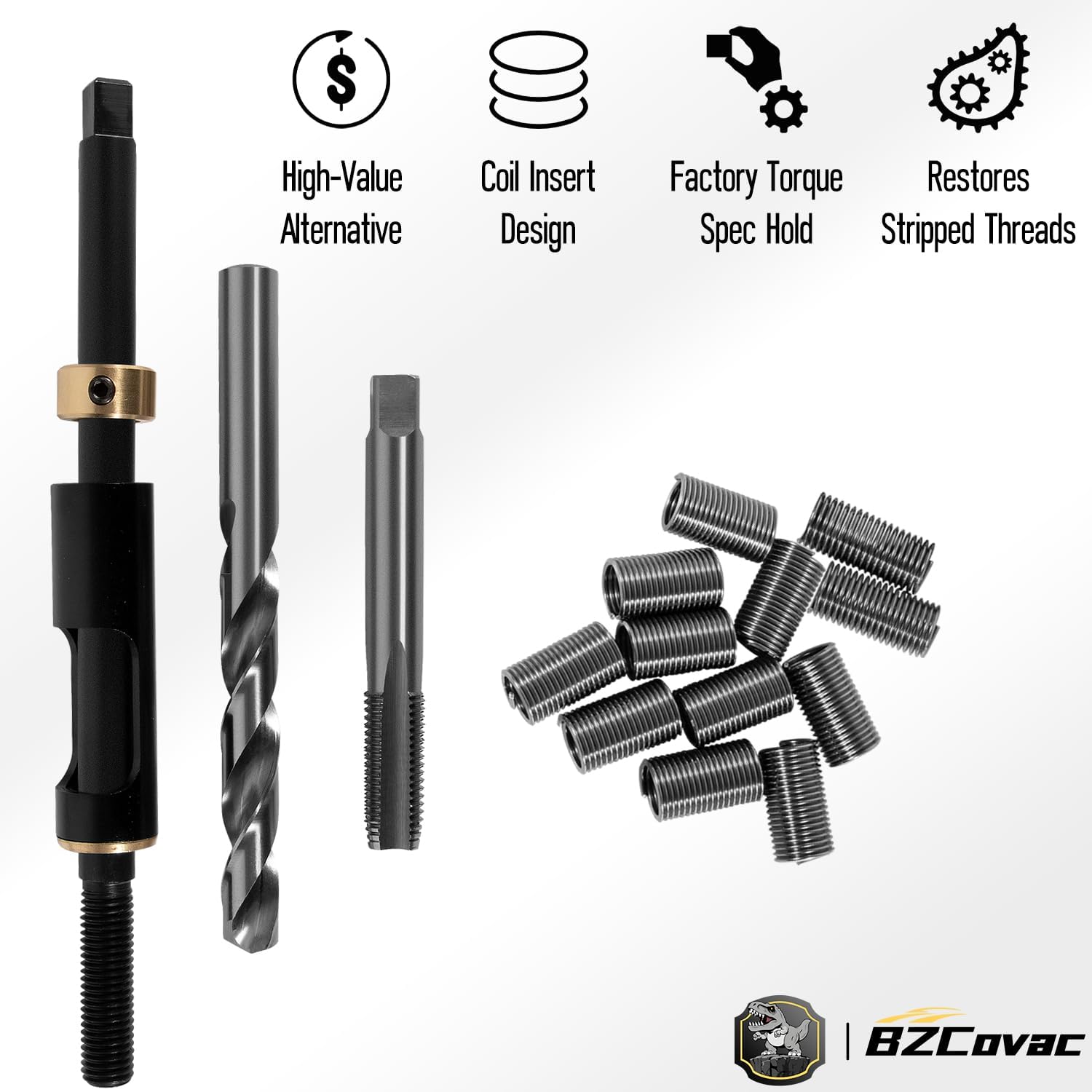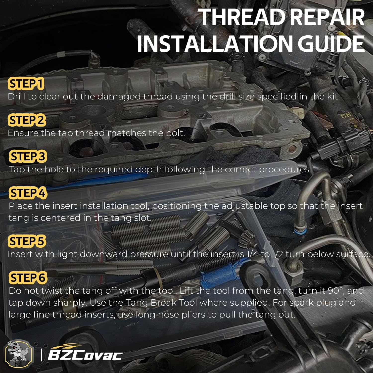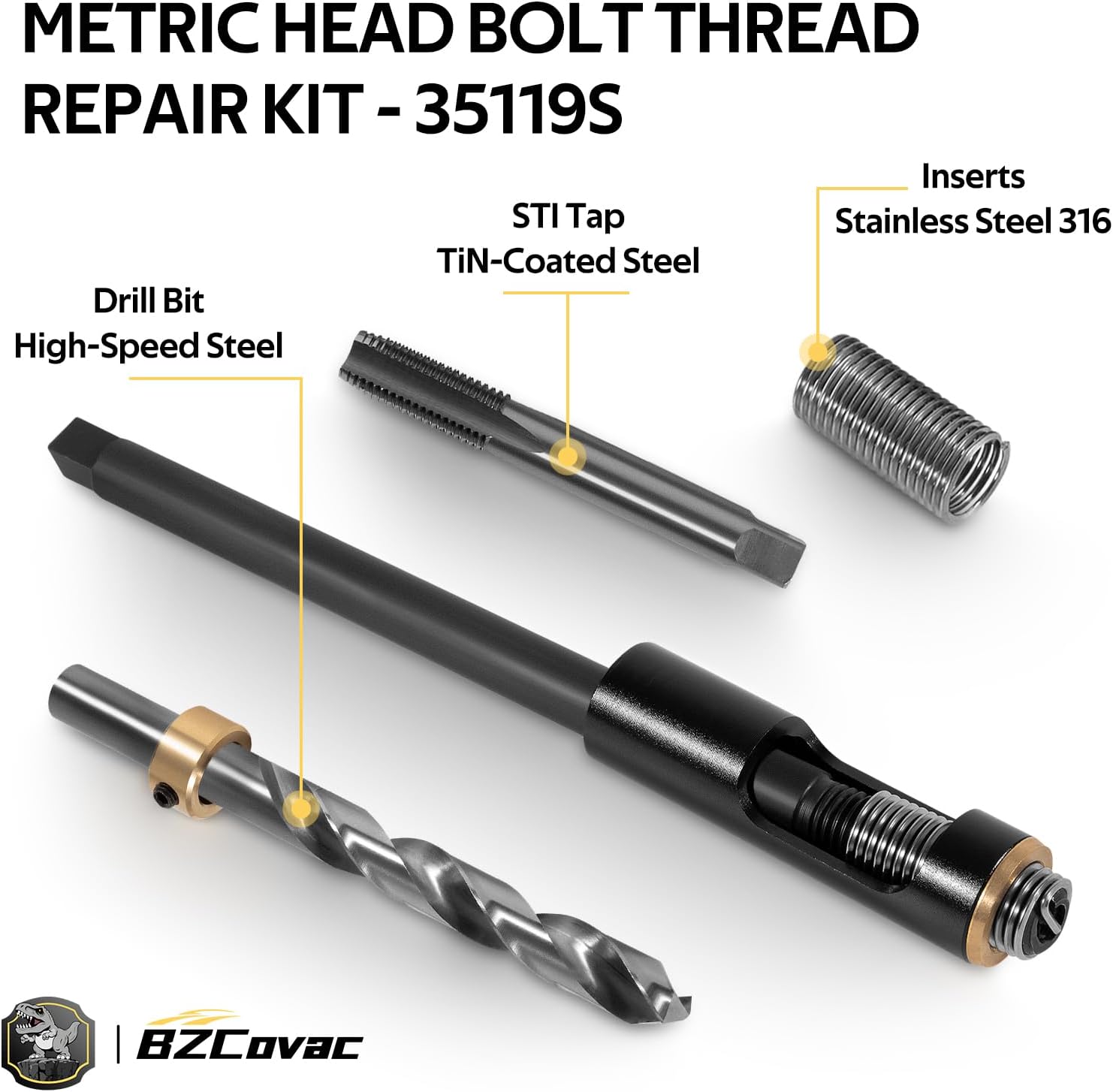 The 35119S cylinder head bolt thread repair tool is designed to repair thread damage on engine blocks caused by disassembly or over-tightening. It features a coil insert design that provides stronger thread engagement, ensuring that cylinder head bolts are securely fixed to factory torque specifications, preventing loosening or damage.
