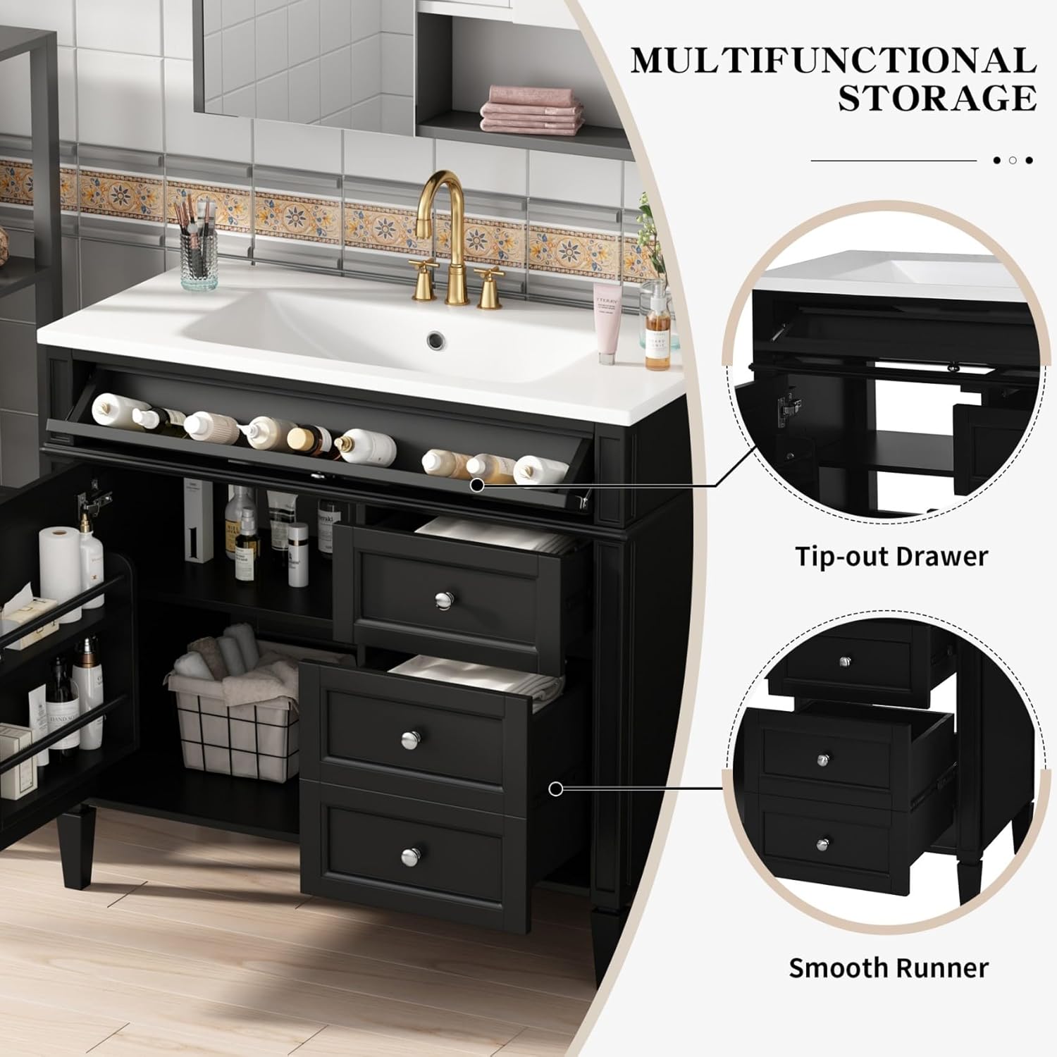| Model Name | 36'' Bathroom Vanity without Resin Sink, Solid Wood Frame Modern Storage Cabinet with Tip-out |