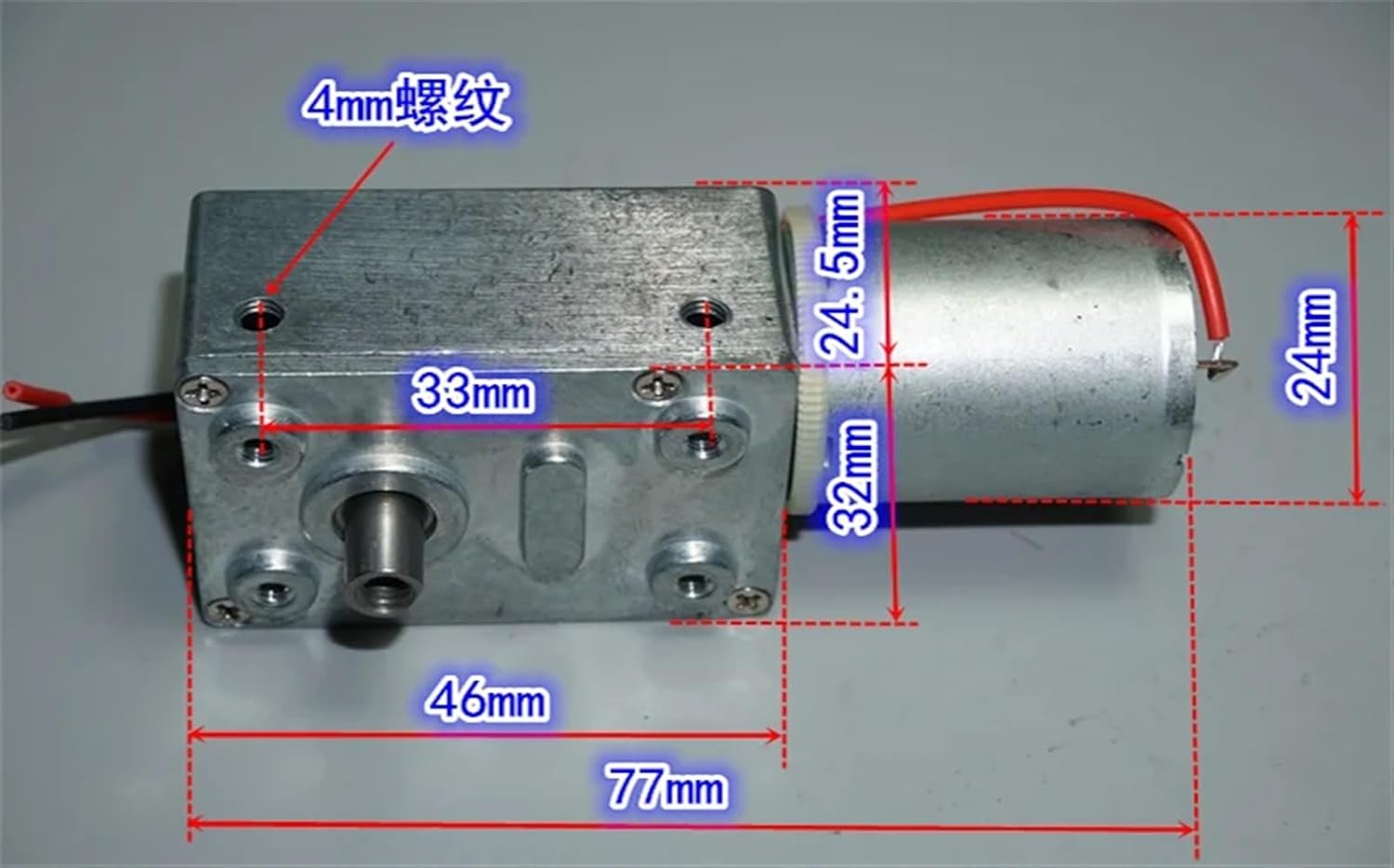 Industrial MotorsSpecification:The stock 370 motor worm gear reduction motor, the inner gear is made of metal and steel, the 1 stage worm gear is made of copper worm and plastic turbine, and the reduction motor stops and locks itself. This function is not available in other straight tooth reduction and planetary reduction. The reduction ratio of the motor is estimated to be about 700:1, and the is estimated to be about 20KG.CM compared with similar products.Motor test about the working voltage between 3-6V, the following is the measured motor voltage 3V5V6V no-load current and speed.Voltage 3V, no-load current 0.11A, no-load speed 5.5 rpm.Voltage 5V, no-load current 0.13A, no-load speed 9.5 rpm.Voltage 6V, no-load current 0.14A, no-load speed 12 rpm.The geared motor weighs about 143 grams.