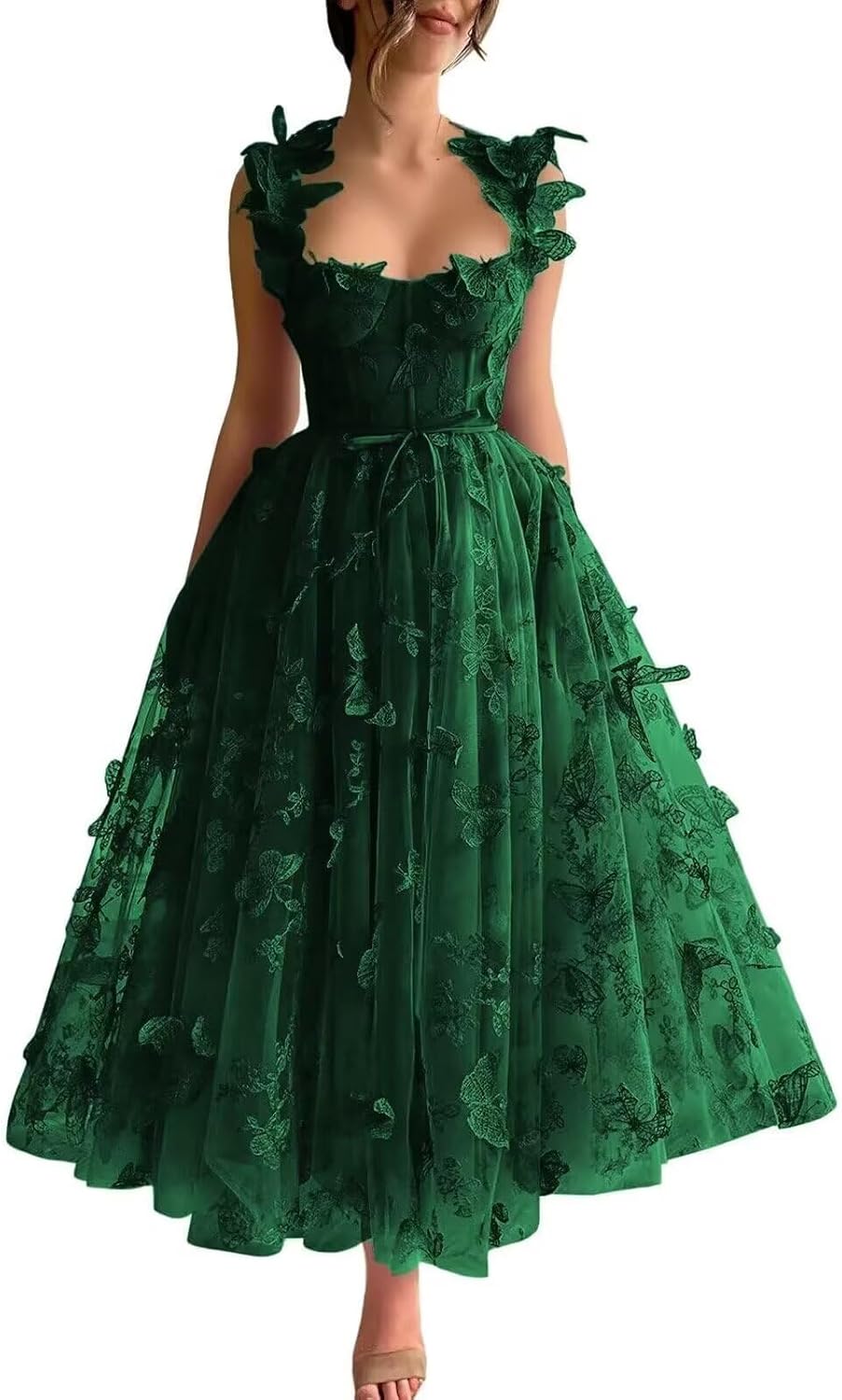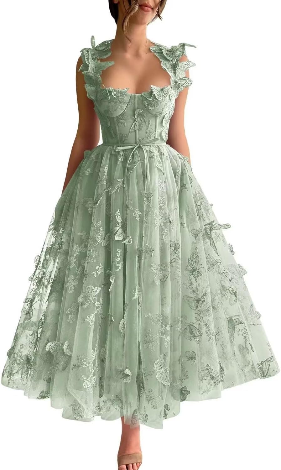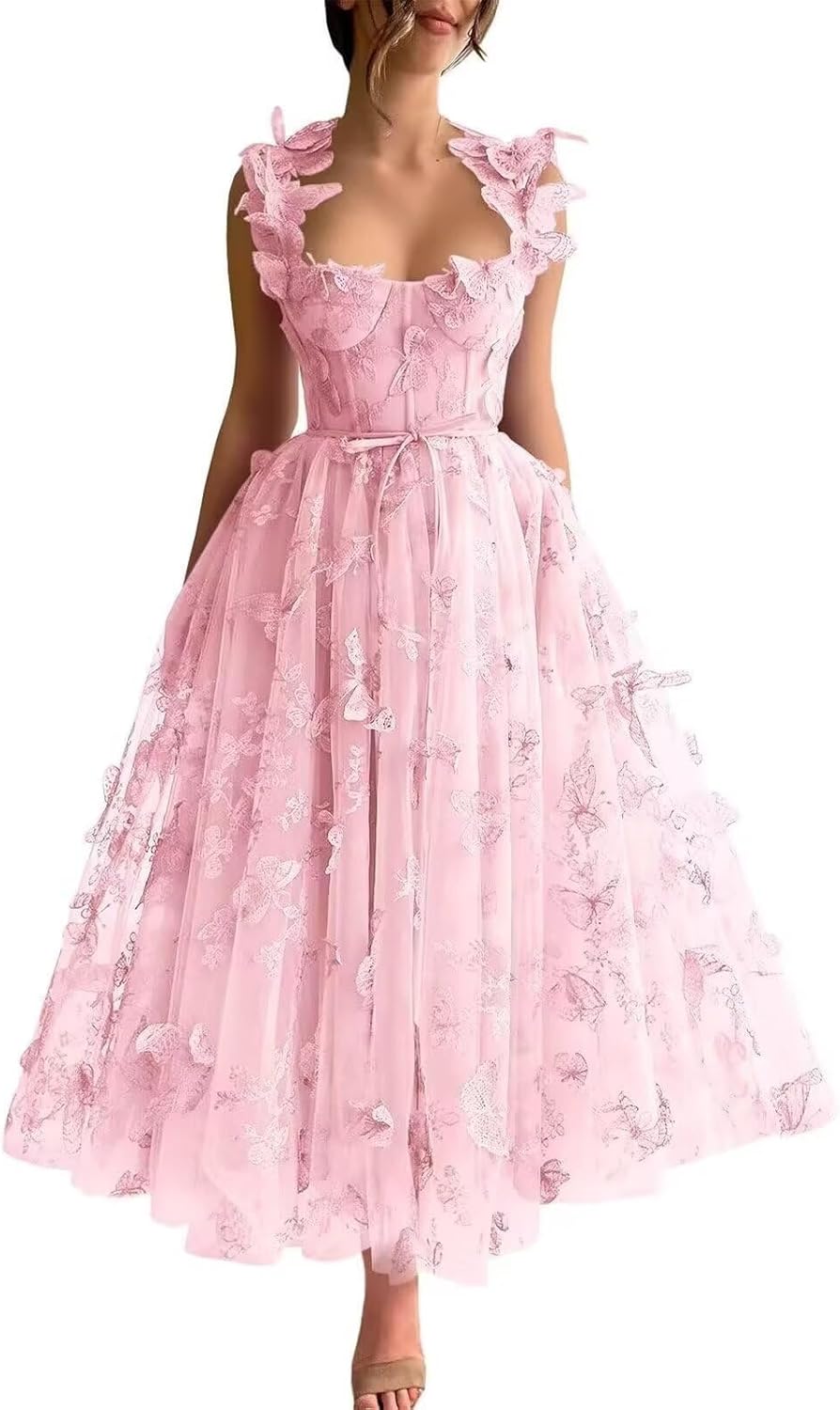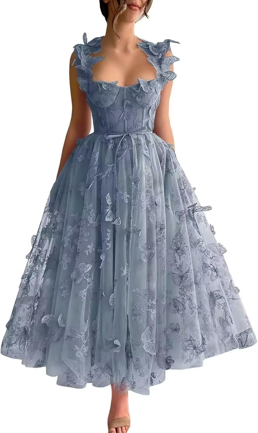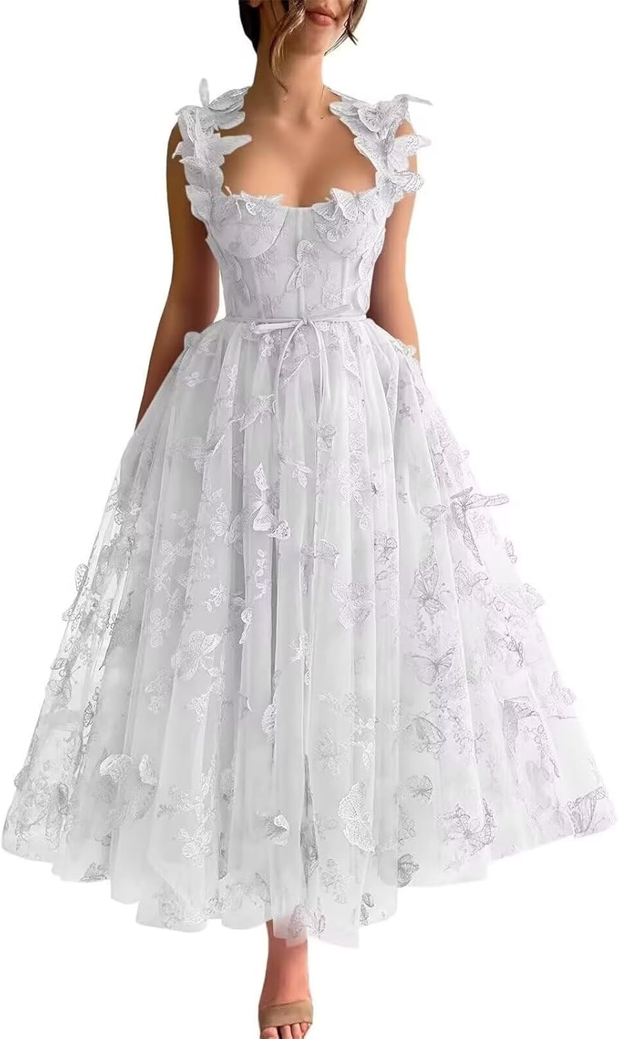 | Embellishment Feature | 3D Butterfly Embroidery, Backless, Floral Tulle, Sweetheart, Tea Length |