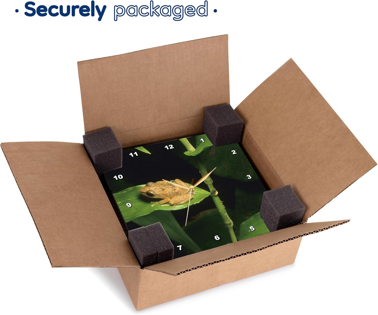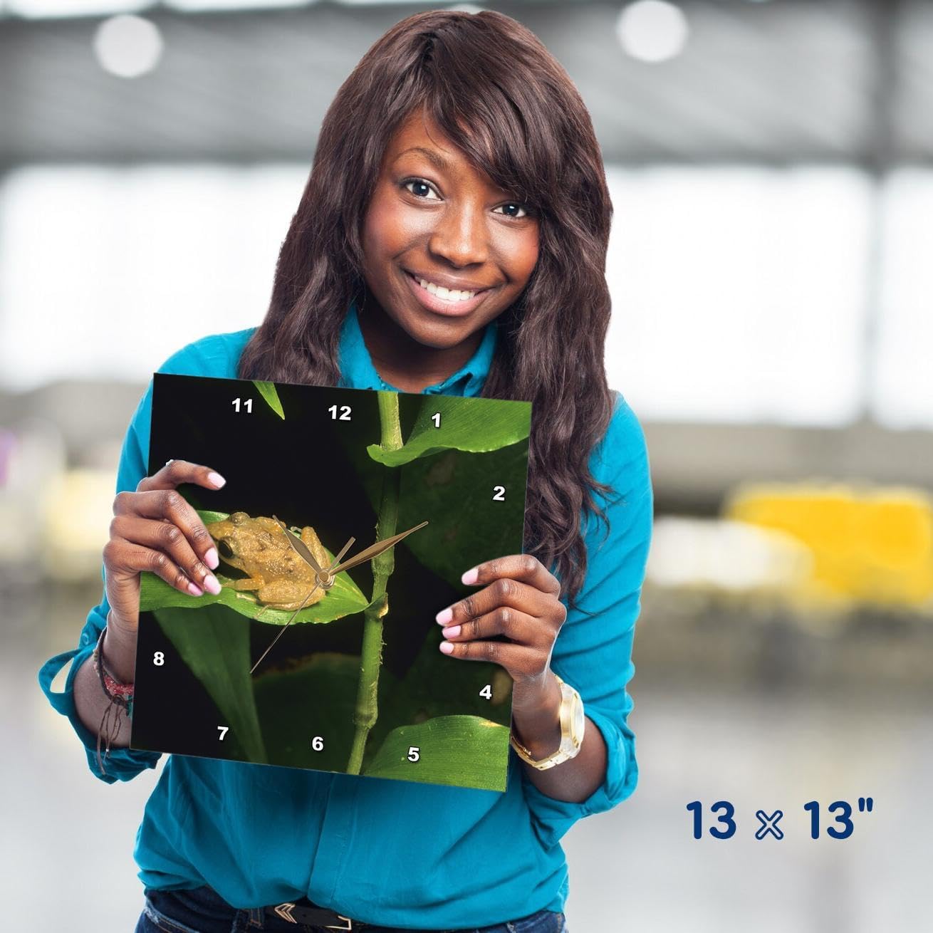 3Drose coqui frog on leaf, El Yunque forest, Puerto Rico.-CA27 KSC0000 - Kevin Schafer - wall clock, 13 by 13-inch (dpp_72316_2). the back has smooth, stone-like finish with the battery and clock works mounted on the surface. One AA battery is required. This product is manufactured in United States.