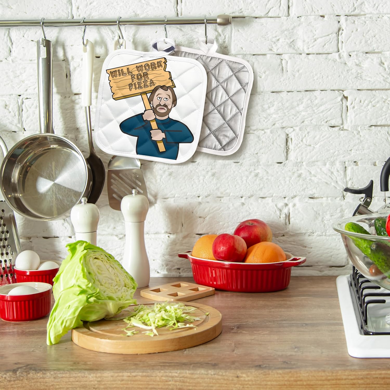 This product is of cotton/polyester blend, pot holder features a quilted design which allows for more flexibility when using. Handy attached loop offers the option to hang for display or storage. Heat resistant for safely removing dishes from the oven and hot pots from the stove. Great as a hostess or housewarming gift.