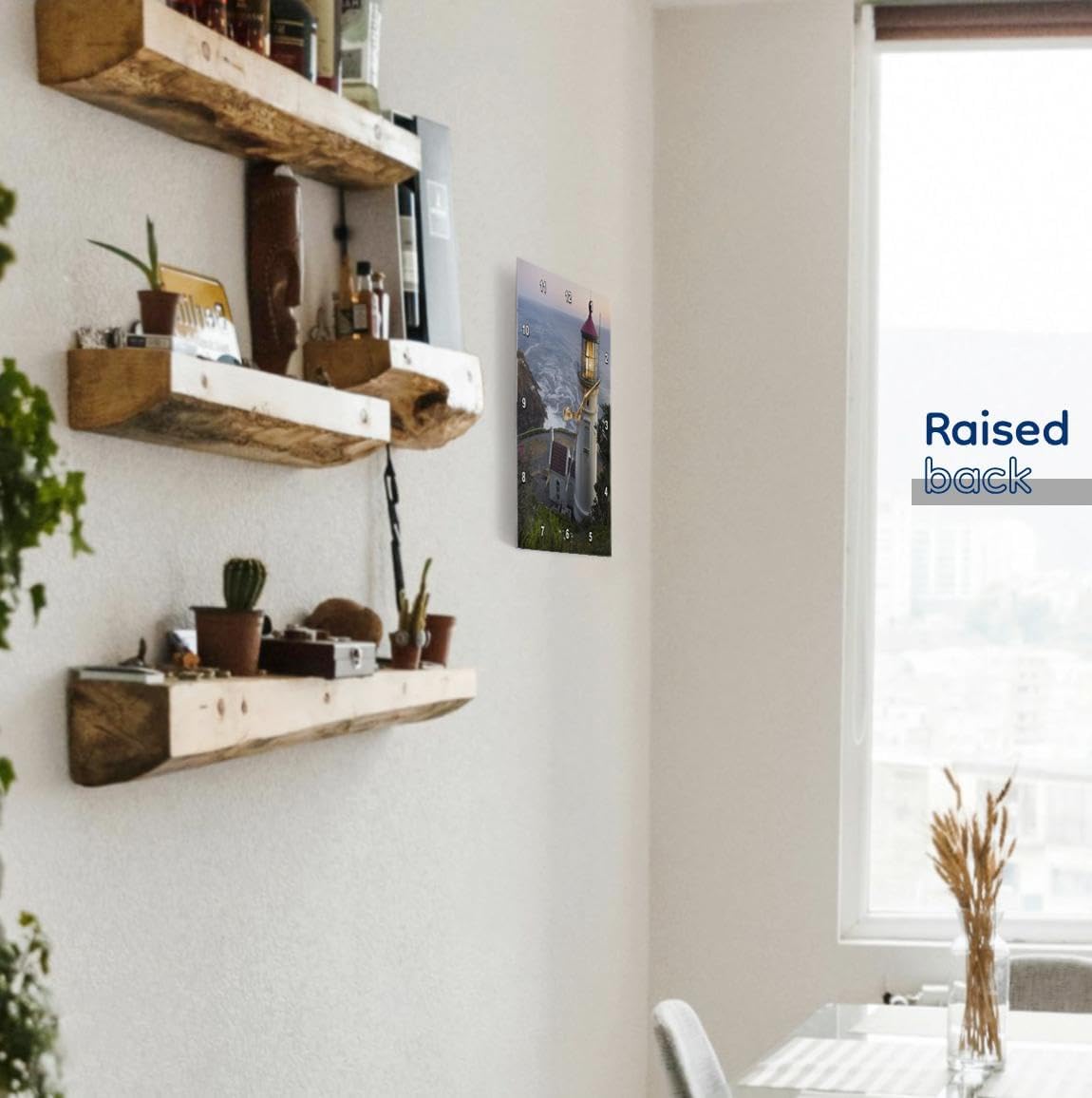 Haceta Head lighthouse, Oregon, USA - US38 RKL0018 - Raymond Klass Wall Clock is a wonderful complement to any room in your home or office. Made of durable high grade aluminum. This frameless clock has a high gloss mirror like, UV coated, scratch resistant finish and is suitable for a moist environment. Sizes available range from 10" x 10" to 15" x 15". Requires one AA battery; not included. Battery box is not covered.