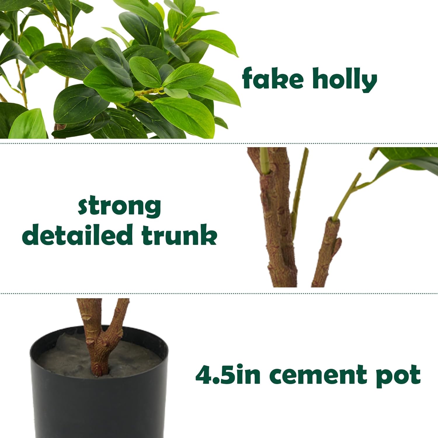 | Included Components | 2 Packs of five forked green fake holly artificial tree |