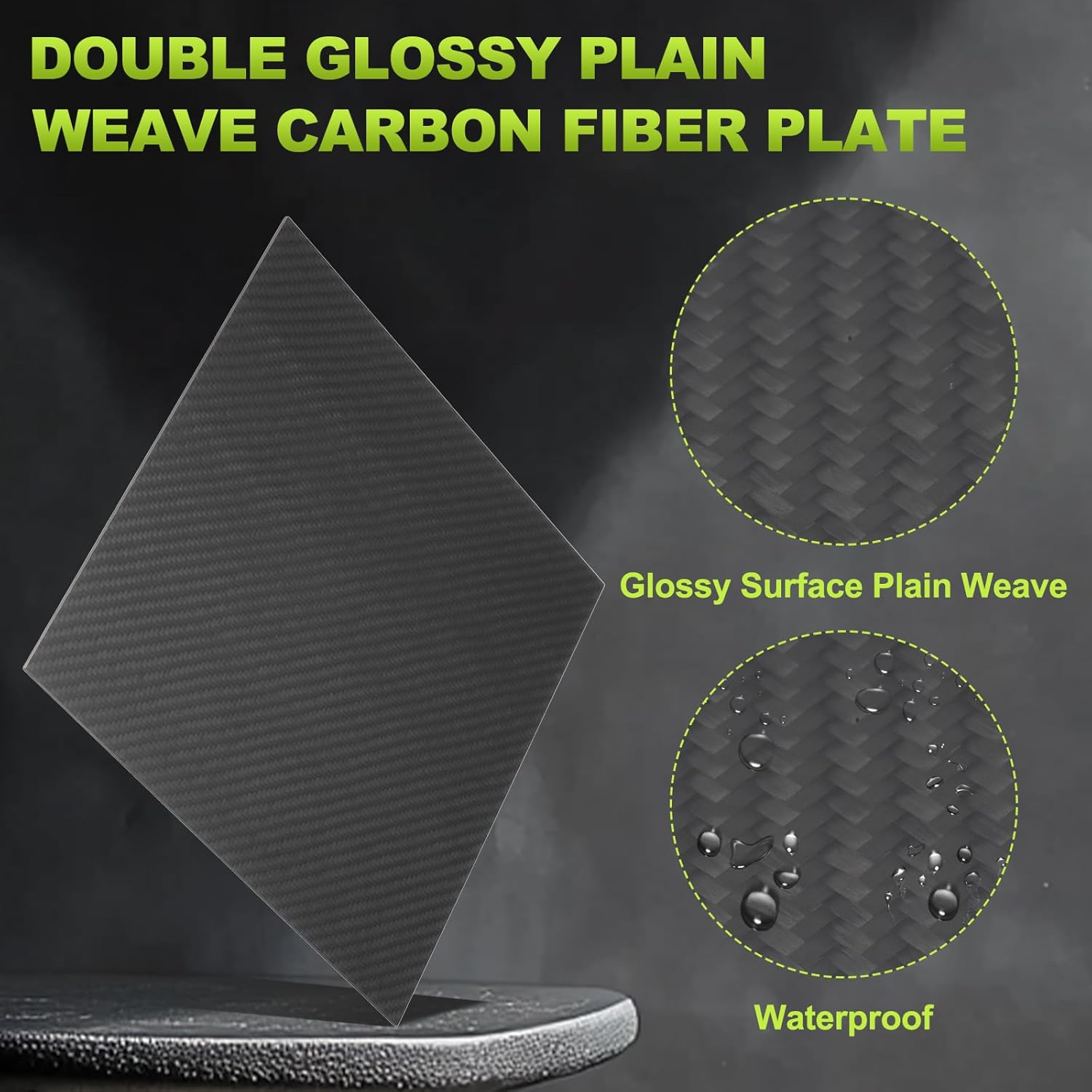 What is it? Wide use in RC aircraft, car models, mechanical parts, auto parts, furniture and household appliances, drones, digital electronics and other fields. What will I receive? Colour: black. Material: 3K Carbon Fiber Overall dimensions: 200 x 300 x 0.5 mm / 7.87 x 11.8 x 0.02 inches (L x W x H). Package includes: 1 x carbon fiber plate. What are the advantages of the product? 1. Durable material: Strong rigidity, lightweight, flexible, resistant to corrosion and temperature extremes. 2. Smooth Edges - Precise cutting, the edges of carbon fiber plates are smooth and burr-free. How to use? 1. Make sure the surface where you will apply the carbon fiber plate is clean and; 2. Measure the application area and cut the plate accordingly using a cutter or scissors; 3. Use adhesive to fix the plate if needed; 4. Carefully position the plate, aligning it correctly. Points to note? Please allow for slight deviations due to manual measurement.