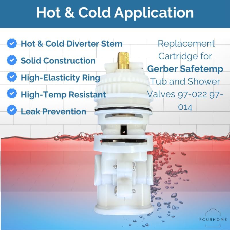 Restore reliable performance to your shower with this 4-3/4 in. single lever pressure balance cartridge, engineered as a direct replacement for Gerber 97-022 and 97-014 shower valve cartridges. Designed for use in Gerber Safetemp tub and shower faucets, this cartridge addresses common issues such as leaks, drips, inconsistent water temperature, and difficulty controlling flow. The pressure-balance design helps maintain a steady water temperature and protects against sudden changes caused by fluctuations in household water pressure. Measuring 4-3/4 inches in length and featuring a rectangular broach, this cartridge provides a precise fit in compatible Gerber valves. Constructed from durable, high-quality plastic, this replacement cartridge is suitable for hot and cold water applications and installs using standard tools. Ideal for DIY homeowners and professional plumbers, it offers a cost-effective alternative to replacing the entire shower valve assembly. Please verify faucet compatibility and cartridge dimensions before ordering.