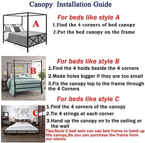 Material:Dual-Net Design PolyesterSize & Measurements(inch) 1.Twin size:39” X 78” X 78”(Width X Length X Height)2.Full size:53” X 78” X 78”(Width X Length X Height)3.Queen size:64” X 86” X 78”(Width X Length X Height)4.California King size:70” X 86” X 78”(Width X Length X Height)5.King size:78” X 86” X 78”(Width X Length X Height)Please Noted:Due to the computer screen, the actual product will have color difference. Please understand that