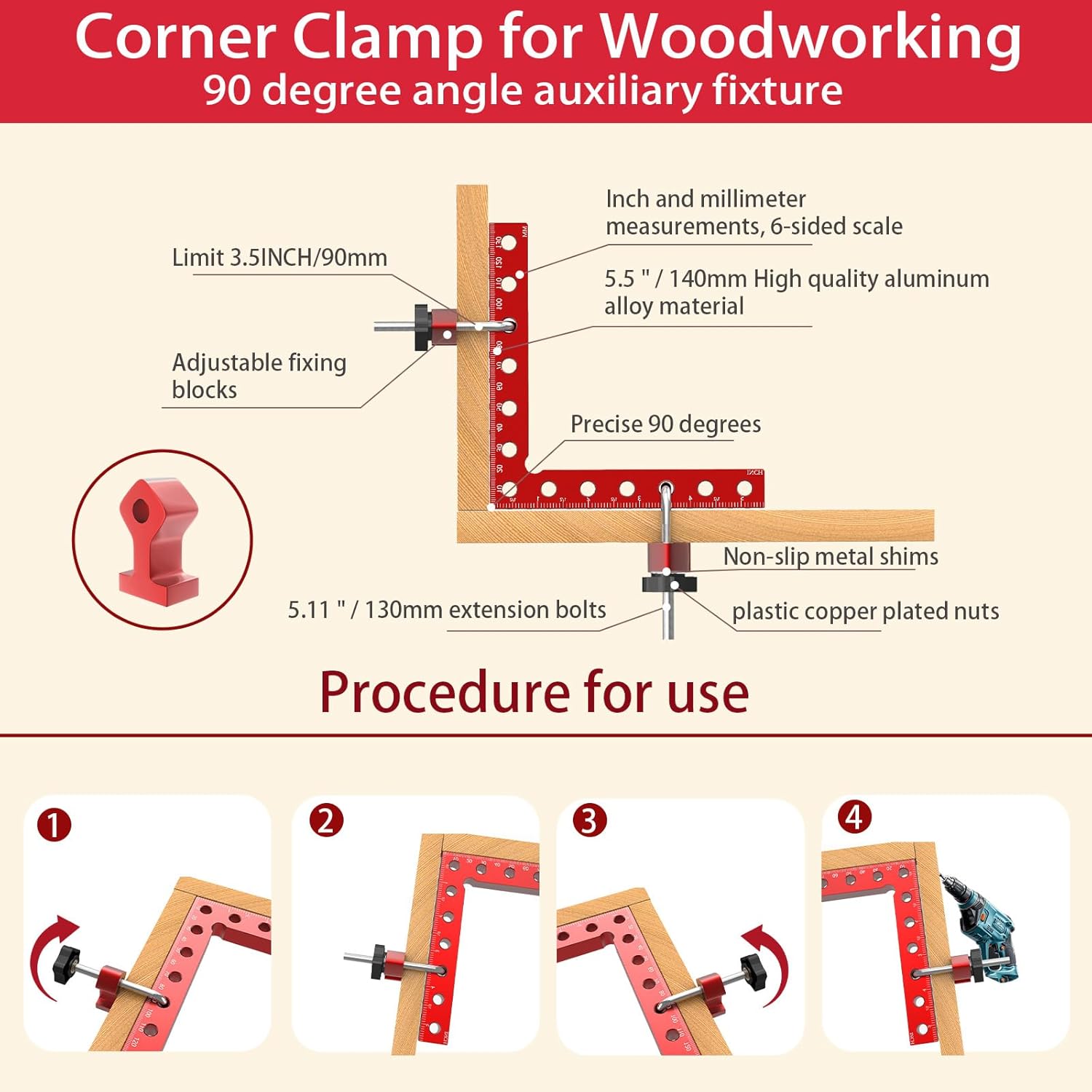 | Included Components | 4 Pack 90 Degree Positioning Squares M8 Plastic Nut Adjustable Fixed Blocks Right Angle Screws |