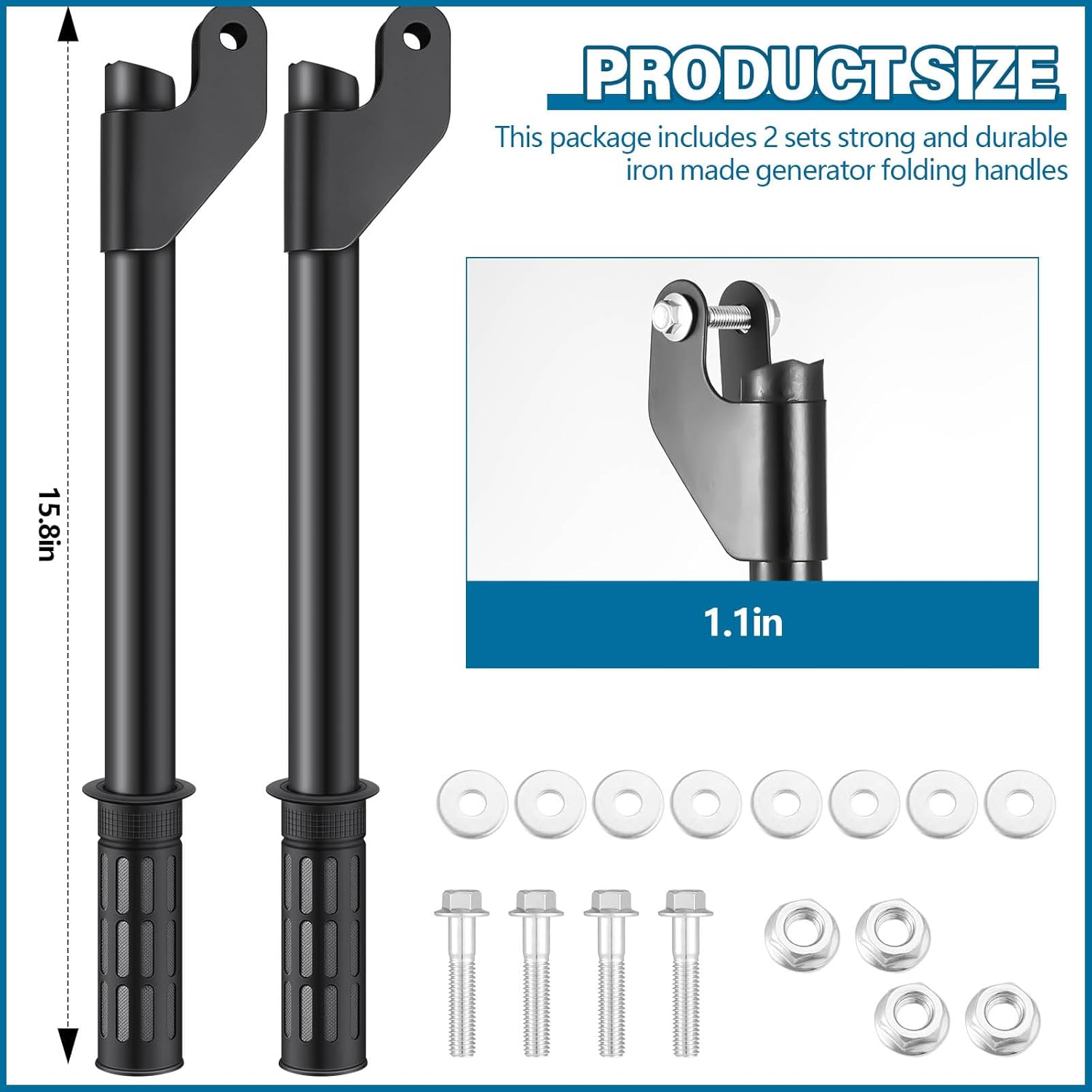 Features: Enhanced mobility: These heavy duty generator folding handles not only promise effortless installation but also contribute to easy moving and handling of your machine. This feature proves particularly useful in times of emergencies where quick action is required. Space saving solution: The foldable design of these generator handles makes them an ideal space saving accessory. When not in use, simply fold the handles for sleek, out of the way storage, thereby minimizing clutter and optimizing space. Specifications: Main material: ironColor: as picture shownSize: Handle length: about 15.8 inches/ 40 cmFront opening: about 1.1 inches/ 2.8 cmPackage includes: 2 Sets generator folding handlesNotes: Manual measurement, please allow slight errors on size. The color may exist a slight difference due to different screen displays.