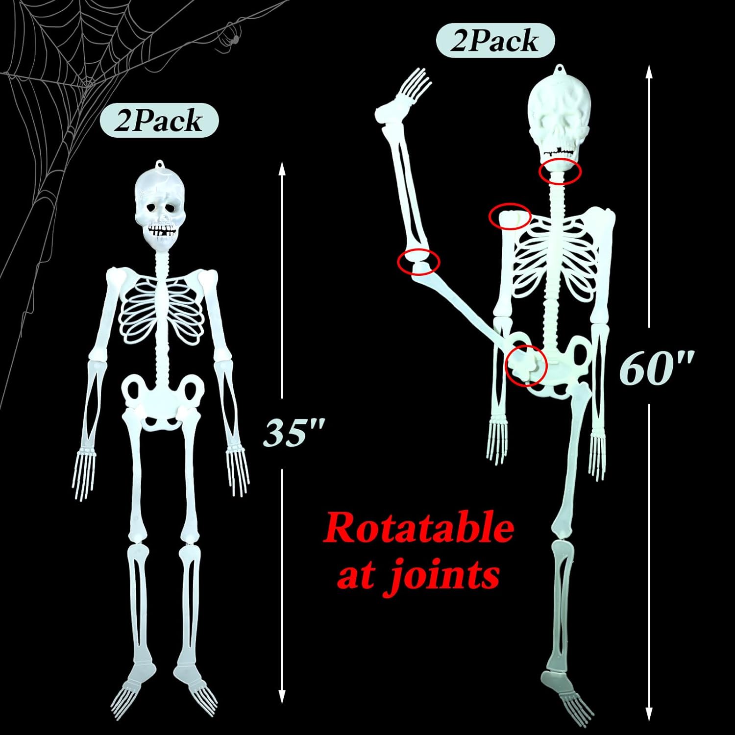 Features: Discover an irresistible combination of creepiness and glowing happiness with our hanging skeleton for Halloween. These glow skeletons are designed to create an incredibly spooky atmosphere that quintessentially underlines the Halloween atmosphere. With our luminous skeletons as your Halloween party decoration, it can show the Halloween atmosphere very well. Ideal for both indoor and outdoor use, this glow Halloween skeleton set enhances the chilling festive mood across all your Halloween scenes. Specifications: Material: plastic Color: luminous Size: Big skeleton: about 60 inches/ 150 cm Small skeleton: about 35 inches/ 90 cm Package includes: 4 Pcs skeletons Notes: Manual measurement, please allow slight errors on size. The color may exist a slight difference due to different screen displays. Small parts included, please keep them away from little kids to avoid swallowing risk. After receiving the goods, please assemble them completely, you can adjust the joint positions according to your preferences and needs, this product is a flat skull frame style.