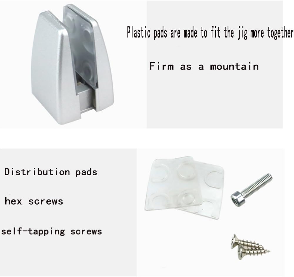 Description: Made of high quality Aluminum Alloy which has corrosion resistance. These brackets have Bright Black surface that look awesome and will not rust. With soft rubber gasket to protect the partition surface. The bracket can fix wooden , glass or acrylic partition on the desk. Easy to install and keep partition firmly. Suitable for commercial use and household use. Specification: Suitable for: 5-10mm thick materials. Material: Aluminum Alloy. Mounting Hole Dia: 5mm / 0.19inch. Dimension: 43 x 33 x 59mm / 1.71 x 1.30 x 2.33inch (L*W*H) Color: silver. Style: Flat bottom. PACKAGE CONTENT: 4 x Bracket , 8 x soft rubber gasket and screw