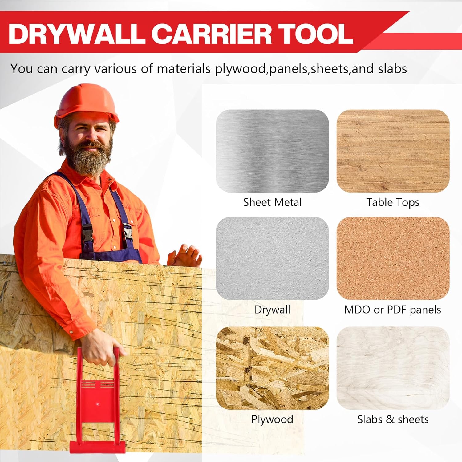 Features: Limit the board: Our ABS plastic plywood carrier tool is designed to limit the board effectively. It helps to prevent goods from falling, offering an efficient, and safer way to transport materials around the worksite. Thickened multi frame bottom plate: Our plywood carriers handle boasts a thickened multi frame bottom plate. This feature ensures an improved balance of goods, taking your sheetrock work to the next level. Specifications: Material: ABS plastic, TPR rubber Color: mainly red Size: about 6.5 x 14.6 inches/ 16.51 x 37.08 cm Package includes: 4 x Drywall carrier tools Notes: Manual measurement, please allow slight errors on size. The color may exist a slight difference due to different screen displays.