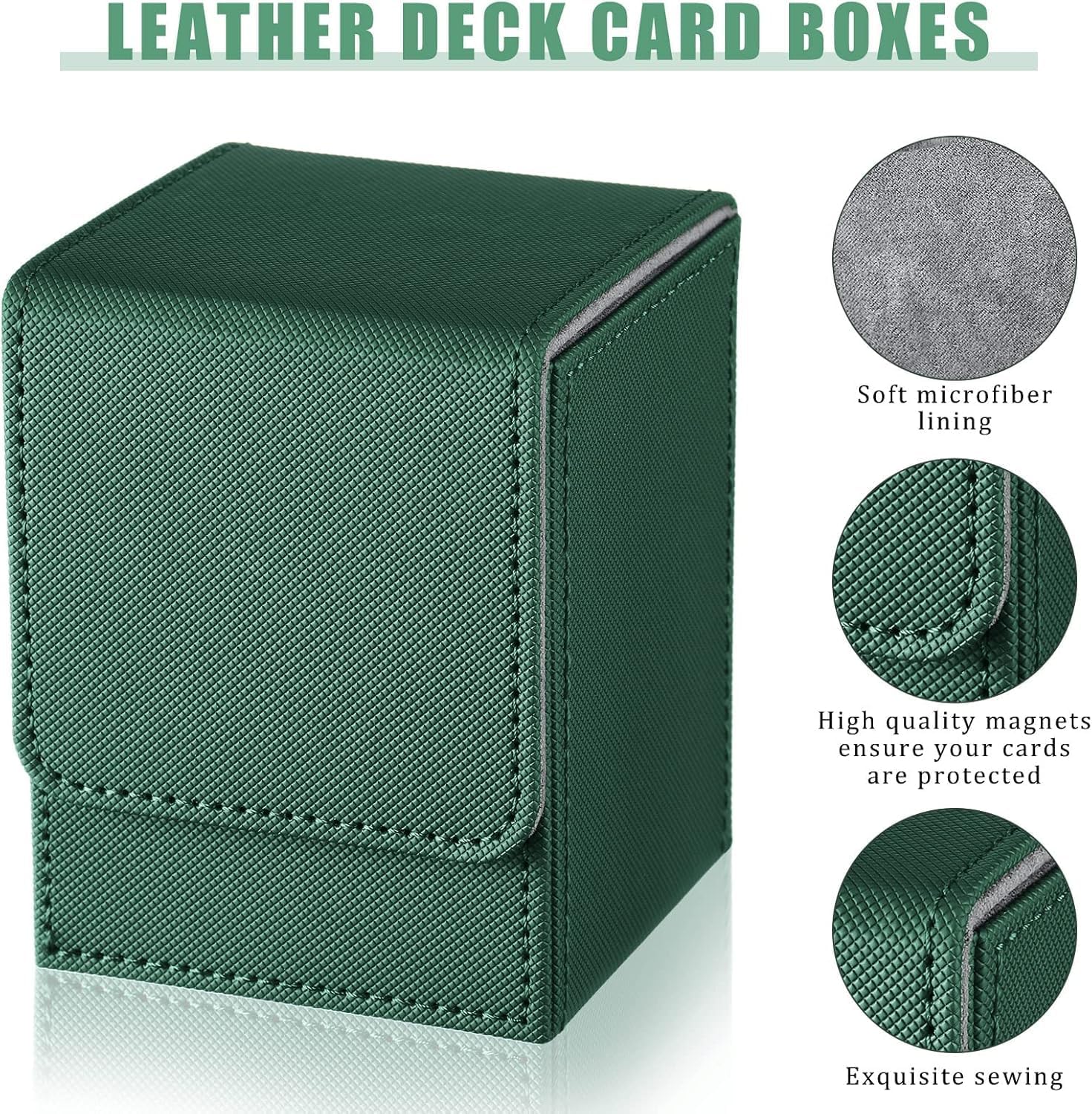 4 Pieces Leather Deck Card Boxes Cards Deck Box for Collectible Playing Card Box Compatible with MTG Commander Decks (Black and Red, Green, Blue, Red, Vertical)